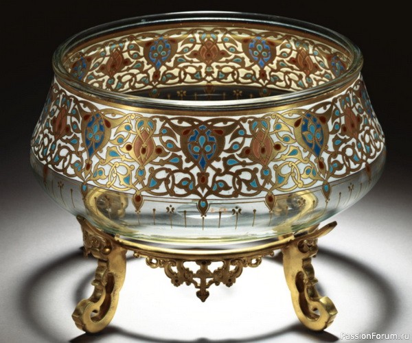 Стеклянная чаша в персидском стиле, украшенная позолотой и эмалью, высота 32 см, Брокар, Париж, 1876 г.