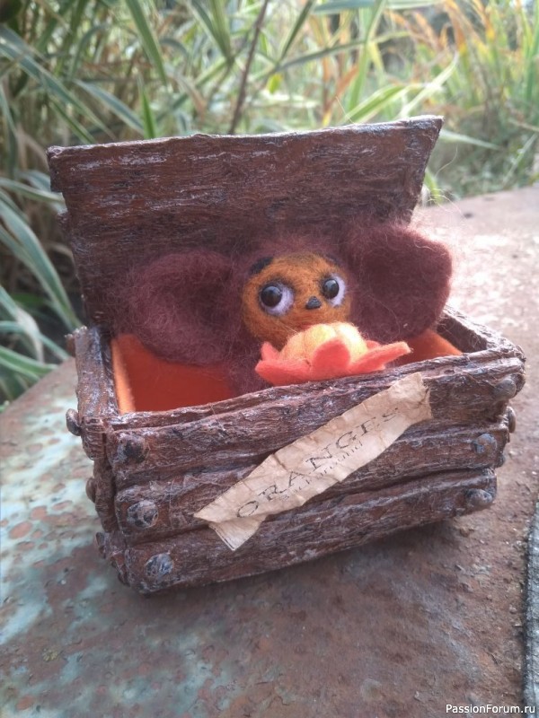 Галина, как же я сразу пропустила этот топик?! исправляюсь — мои аплодисменты вашему Чебурашке и его приданному. И ящик и апельсин очень понравились.