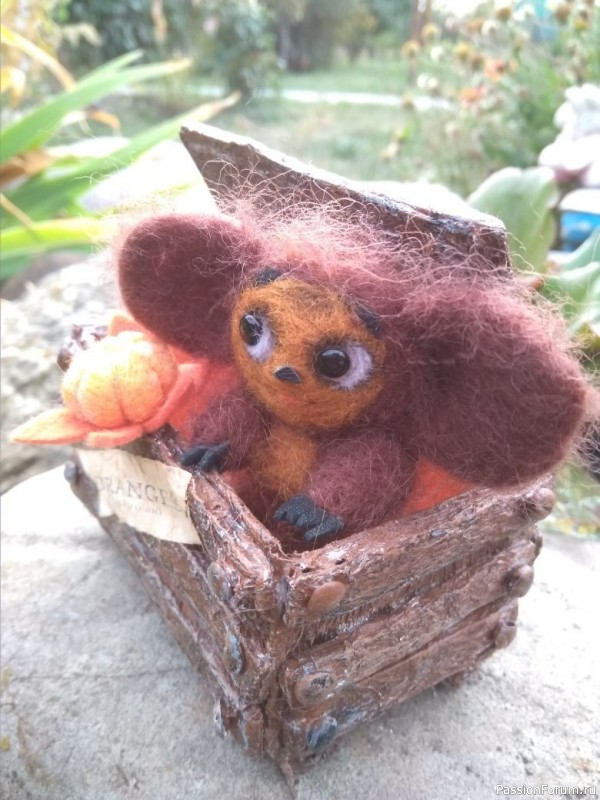 Была одна дама на форуме (может и сейчас есть, только молчит давно), когда однажды на каком-то конкурсе я не проголосовала за ее куклу, и она в личные сообщения мне столько возмущений написала! Чего ради я проголосовала за что-то другое, а не за ее конкурсную работу! Ну уж извините, конкурс на то и конкурс, чтобы голосовать за то, что понравилось, а не по дружбе. Вот если Юлины валяные игрушки, украшения и прочее вызывают восторг и приятные улыбки, то как за них не проголосовать? Или куклы, созданные по МК А.Голеневой — ведь прелесть! Или ваш Чебурашка — прелестный лохматушка, да еще с таким аппетитным апельсином… Разве не притянет взгляд ? Лично я «за» такие конкурсы !