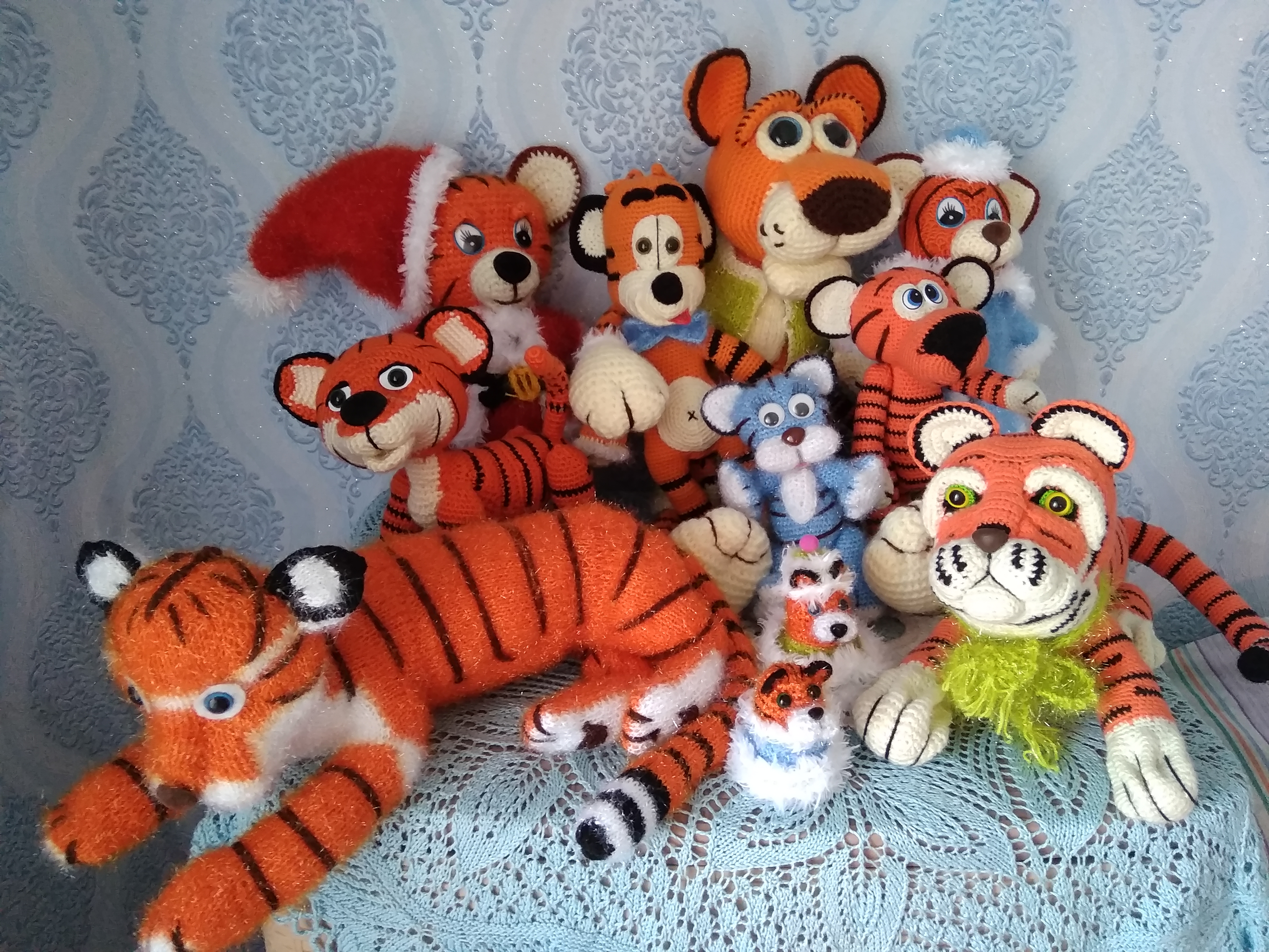 Здравствуйте, милые коллеги. Все уже потихоньку готовятся к встрече 2022 года и мы с мужем тоже. Вот такая тигриная компания у нас получилась