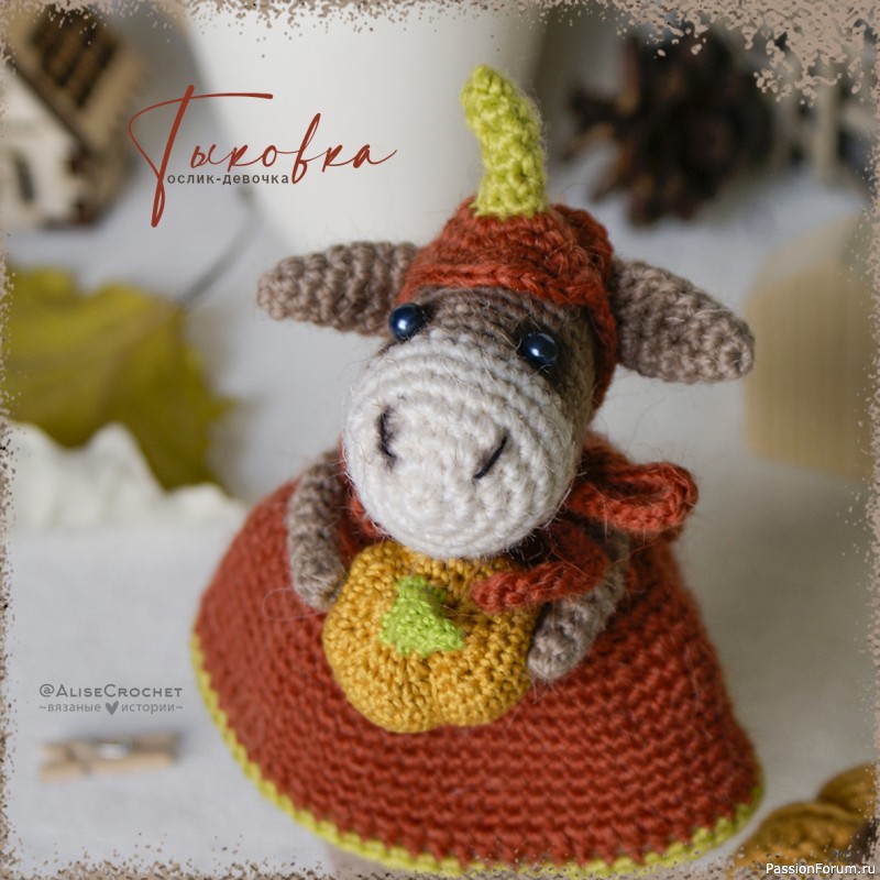 Вот, наконец-то собрала замечательную девочку-ослика Тыковку....Чуть больше года она лежала у меня в недовязах. Получилась прелестная малышка. Так бывает: сначала не идет вязание какой-то игрушки, а когда соберешь - ягодка получается.