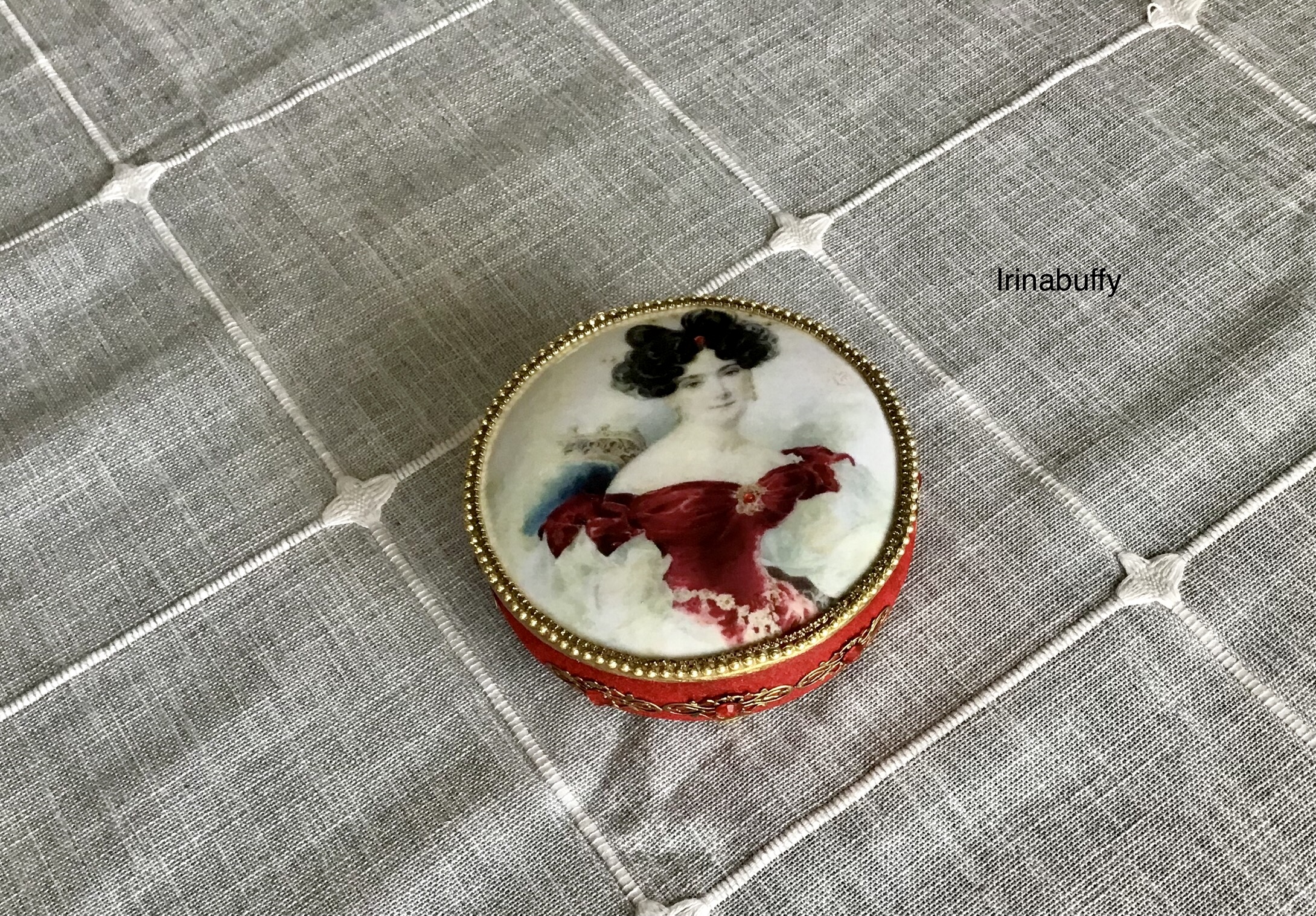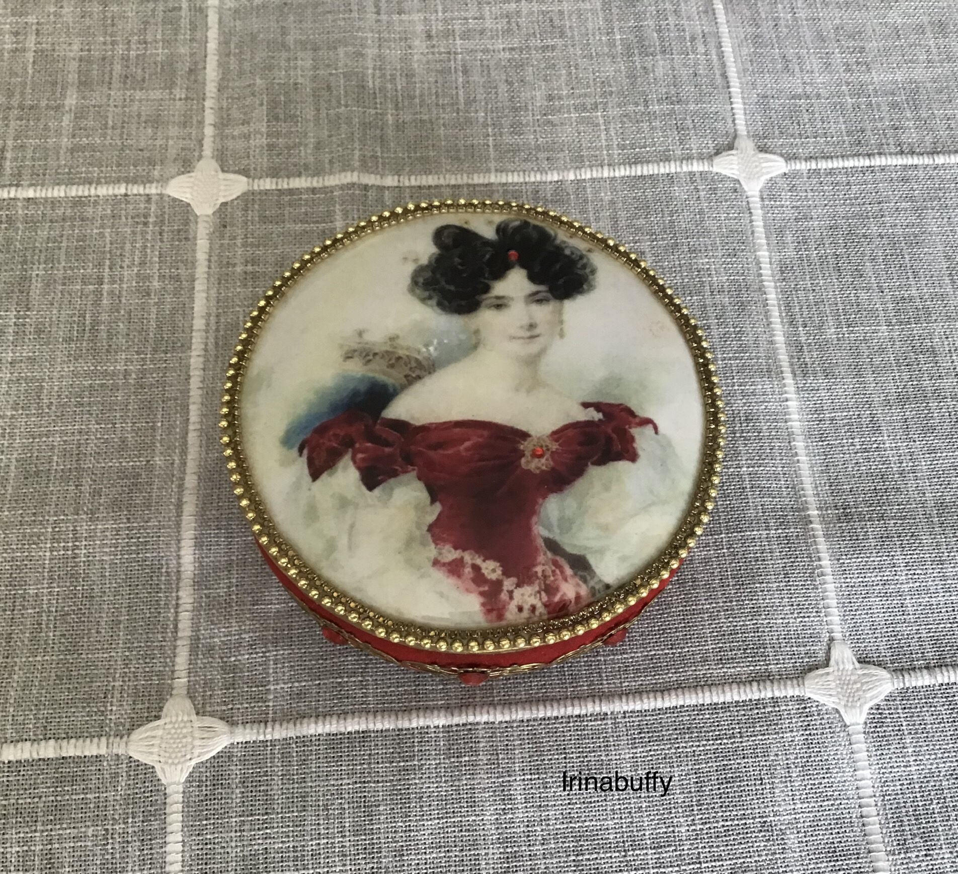 Всем доброе время суток!После отсутствия на форуме в течение месяца,представляю свои новые работы.С упоением ушла в творчество,соскучилась ужасно по краскам,заготовкам ,картинкам.Как говорят мои дочери,я уже зависимая от этого дела.Думаю,что это не такая уж и плохая привычка.Все мы здесь такие.Недавно я увидела топик Николашиной Елены с портретом и рассказом о Натальи Строгановой,первой любви А.С.Пушкина.Мне так понравился этот милый образ,что решила обязательно запечатлеть его в своей работе.Так родилась маленькая шкатулочка» Красный бархат».Вторая -в любимом стиле Шинуазри.Постоянно возвращаюсь к нему.Нравится сам процесс: работа с поталью,вживлением,лакировкой.Подробней опишу порядок работы под фото.