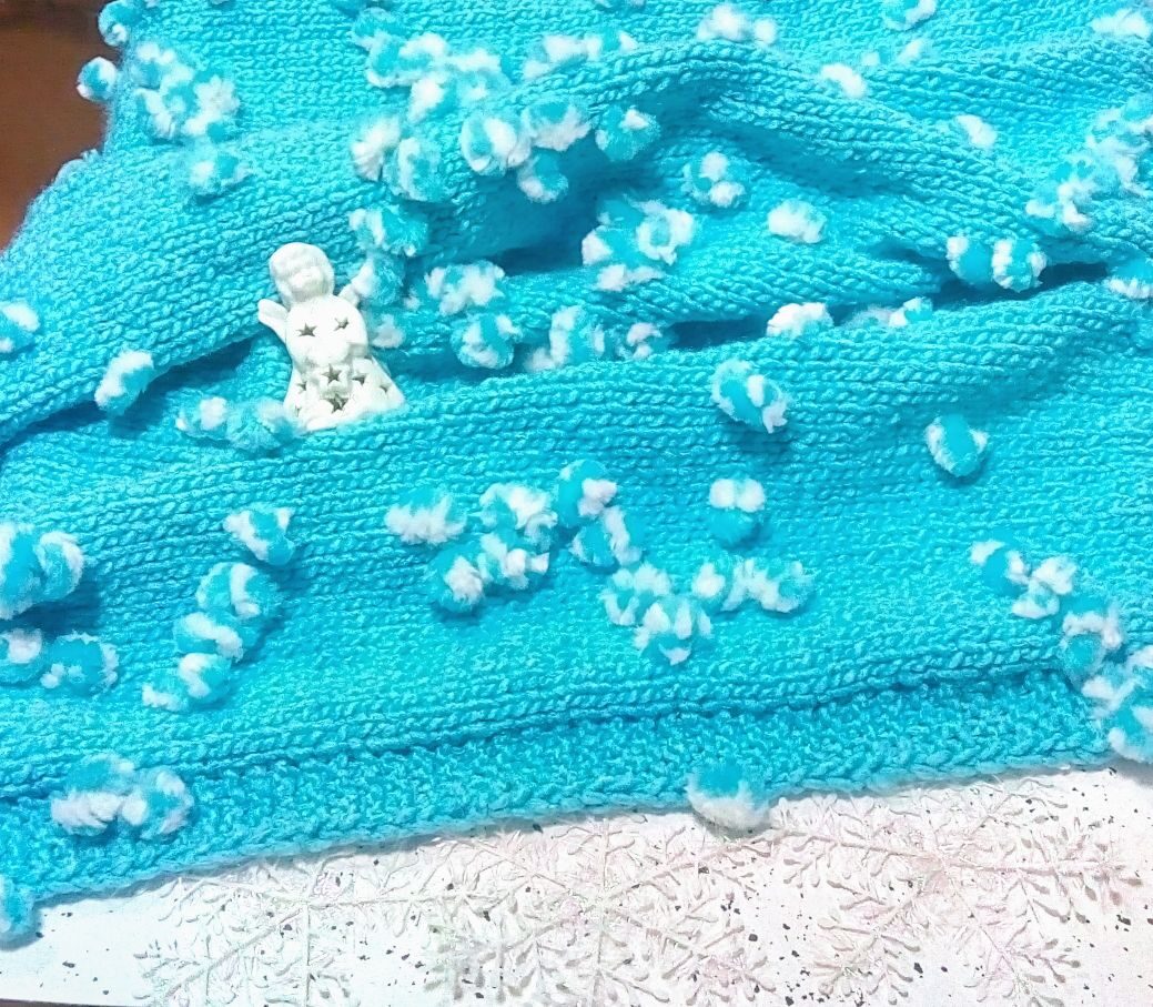 Плед связан из ниточек Alize pomponellapomponella, упаковки из 6 моточков зватиет на пледик размером 100 на 140 см)) вязала для новорождённого малыша
