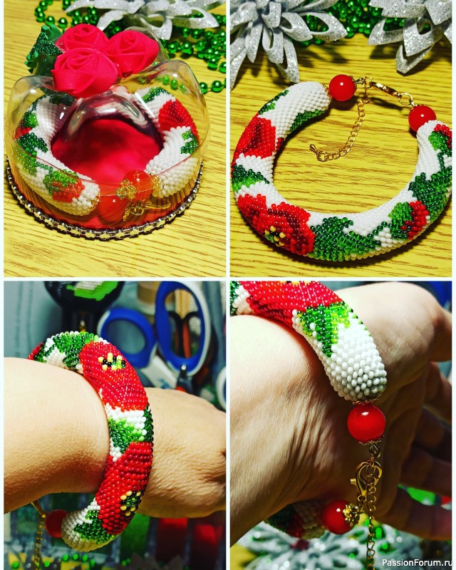 Вечер добрый,всем кто еще не спит! Сегодня я отдыхала от будней нашего времени. И наотдыхала браслетик вязанный крючком с бисером. Маки на белом поле. Получился бъемный,на двадцать бисерин в окружности.