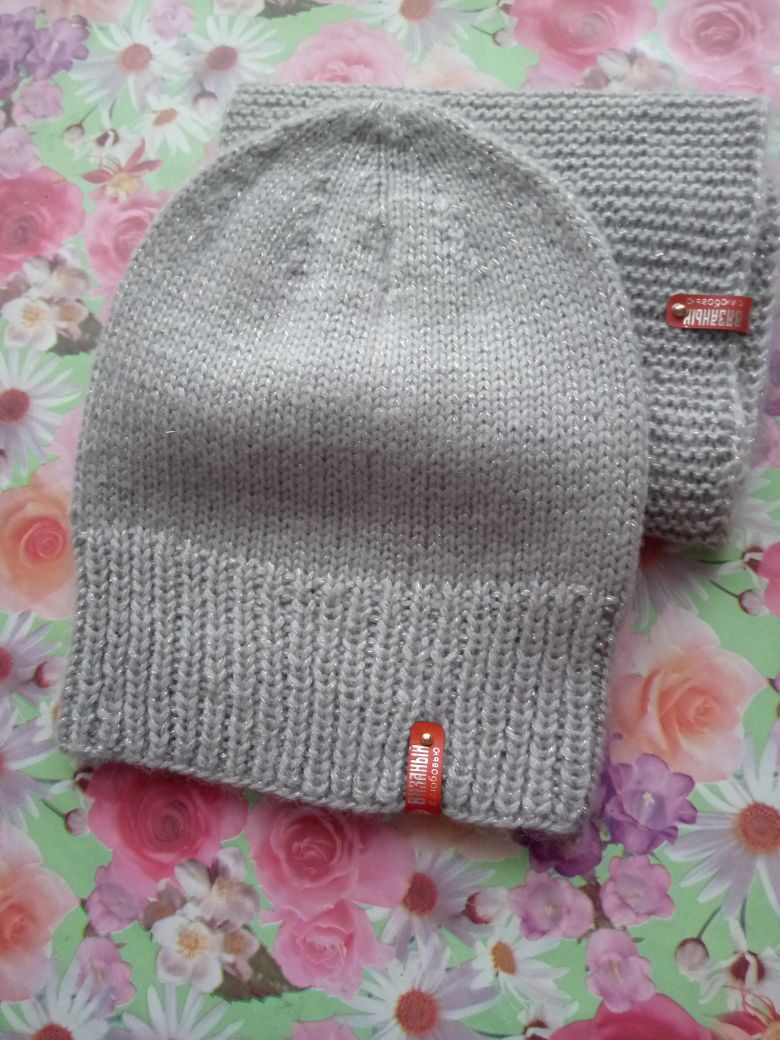 Шапка женская и снуд Сезон : Зима Состав: Шерсть Акрил Размер 56 Цвет металик