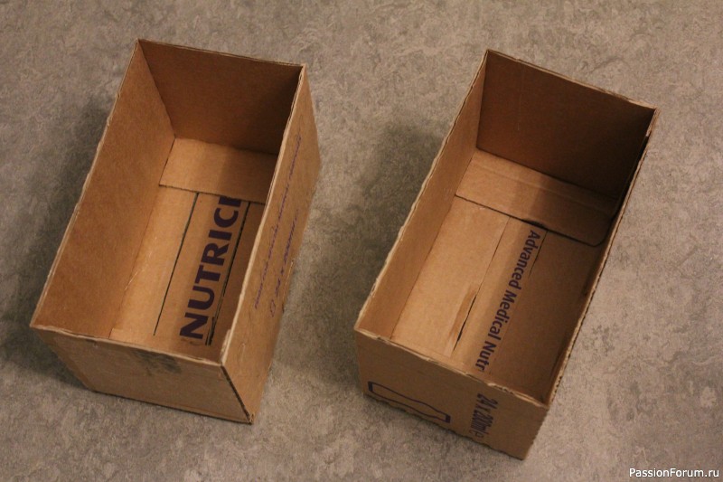 Вот такая картонная коробка была использована для создания этих двух шкатулок. Ее я разделила попалам, затем еще раз разрезала на дно и крышку, обклеила дополнительно картоном итд.