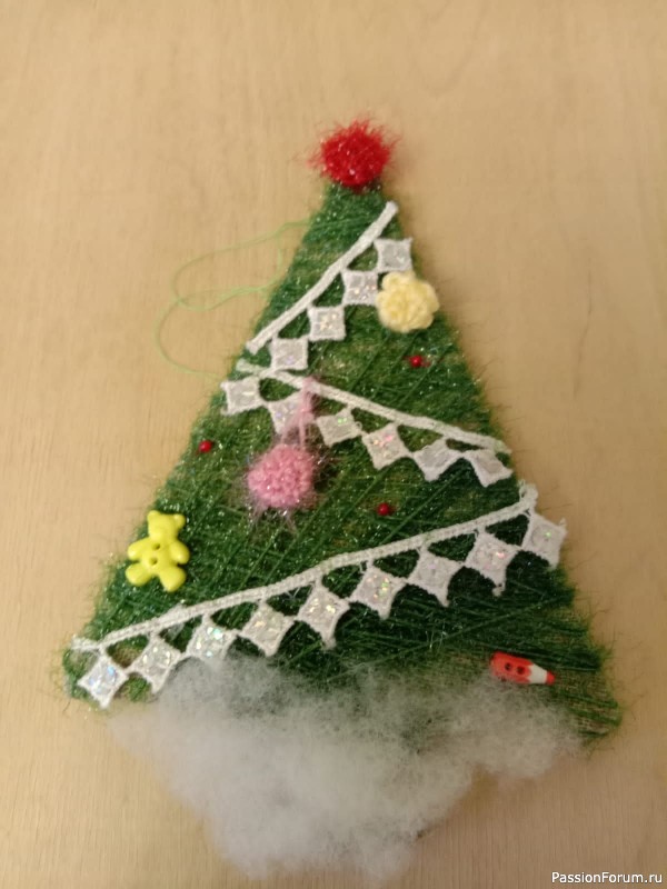 Мастер № 6 .Деревянная ёлочка с вышитыми игрушками.