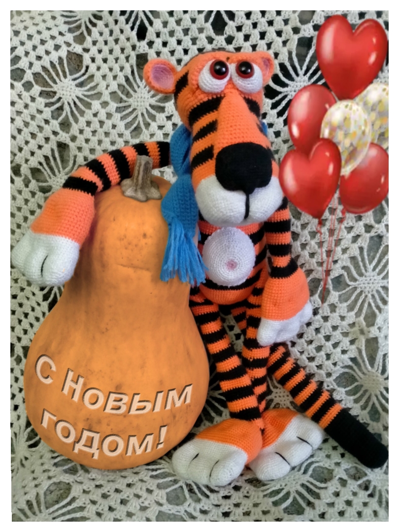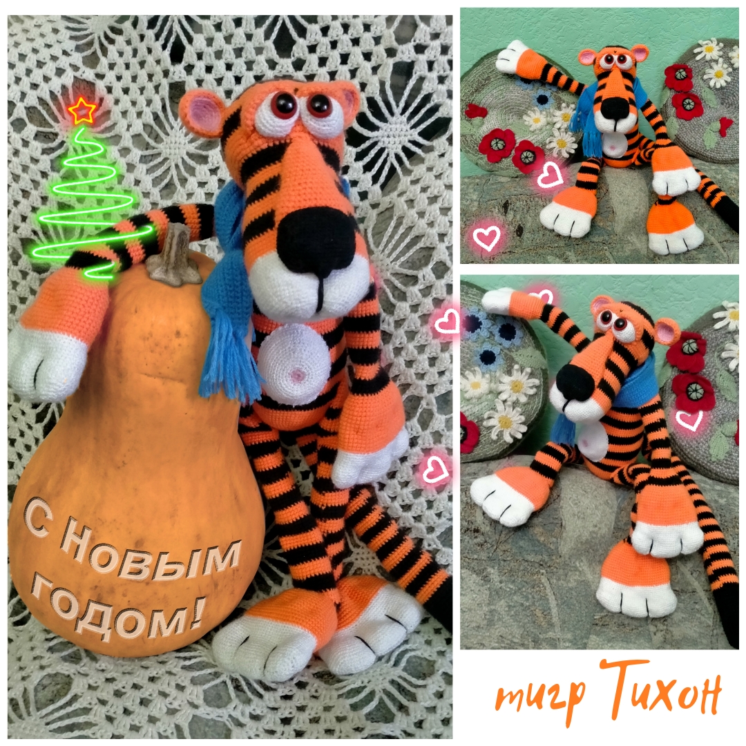 Здравствуйте. Представляю свою работу на конкурс "Символ 2022 года". Это связанная крючком игрушка - тигр Тихон.