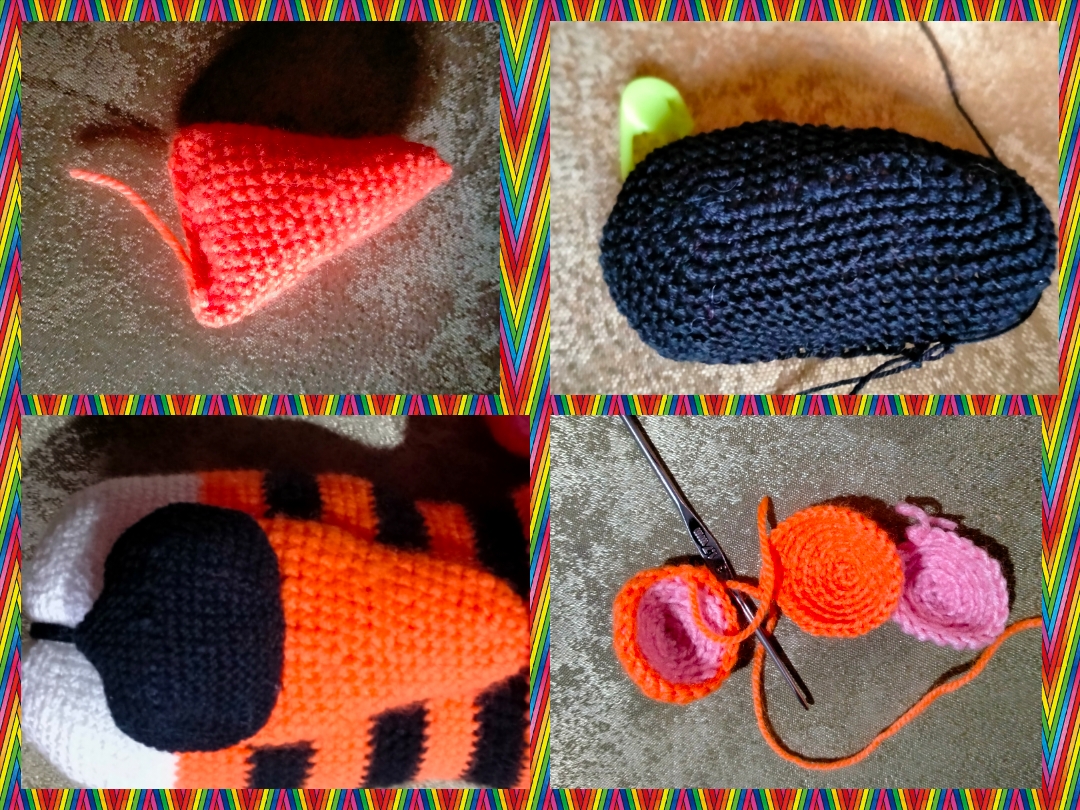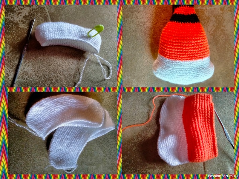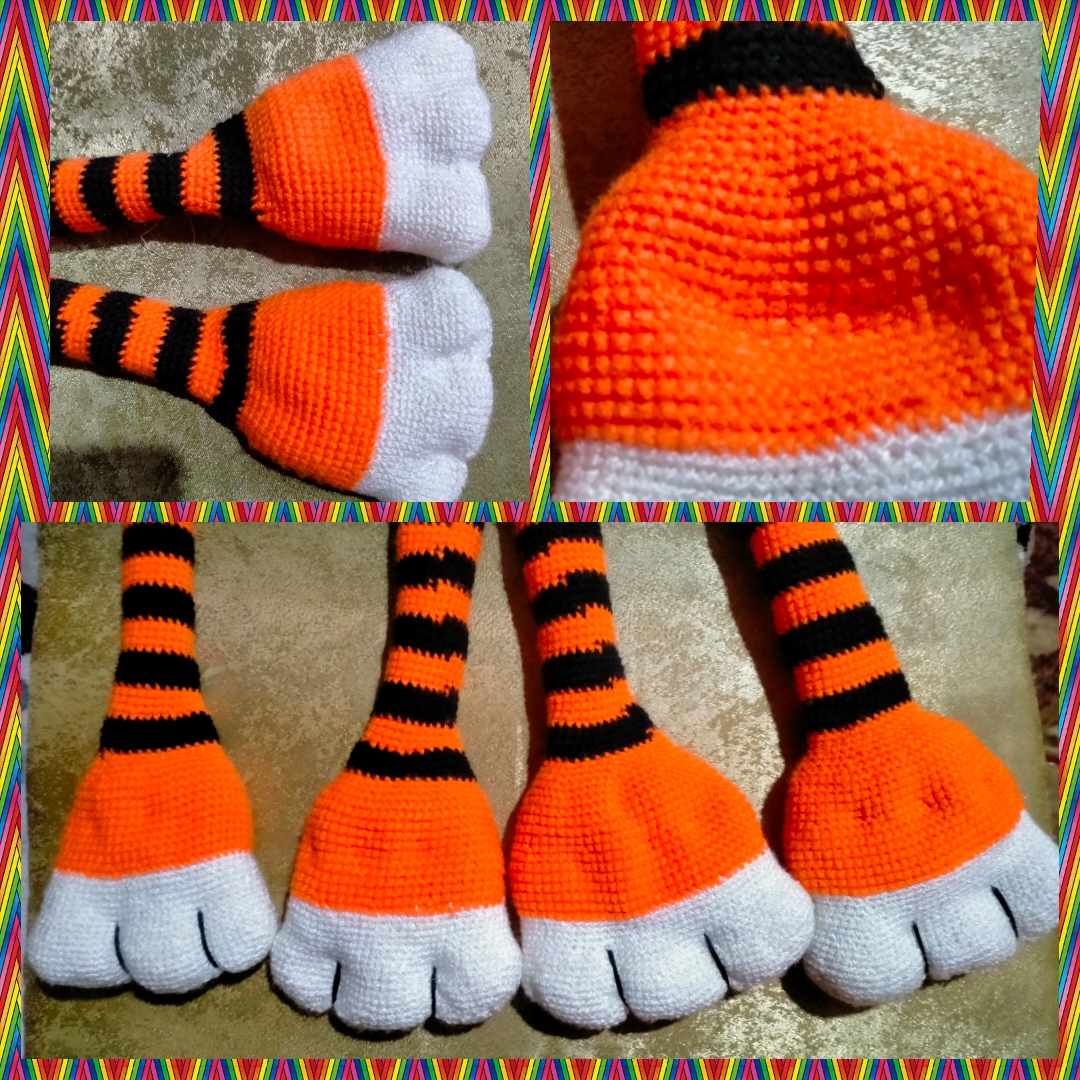 Задние лапы ( белая, оранжевая, чёрная пряжа)