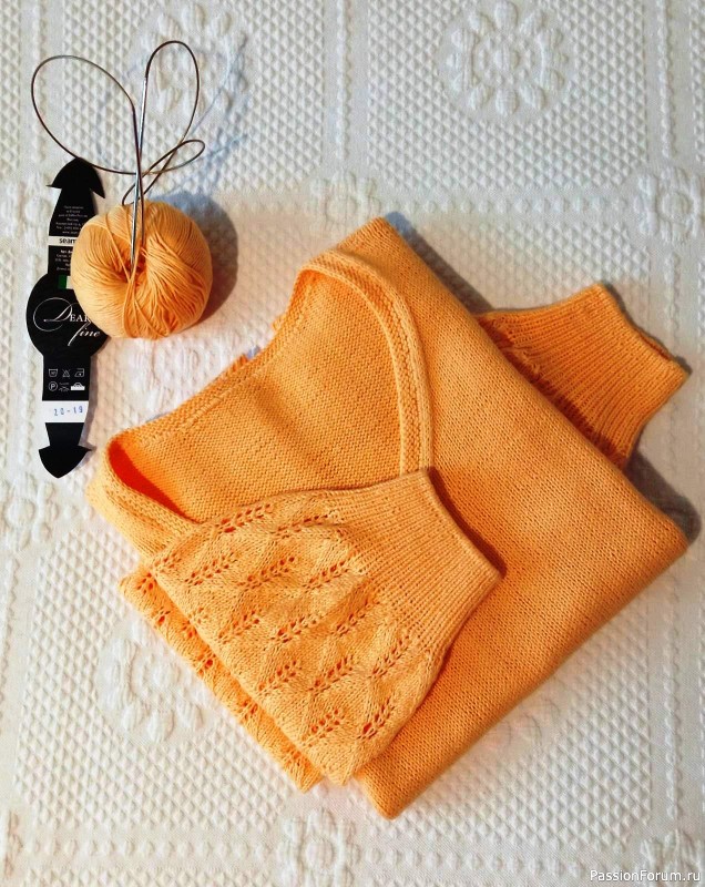 Джемперок замечательный! Аккуратно связан, красивый ажур, ровная гладь, да еще и цвет солнечный! Очень хорош!