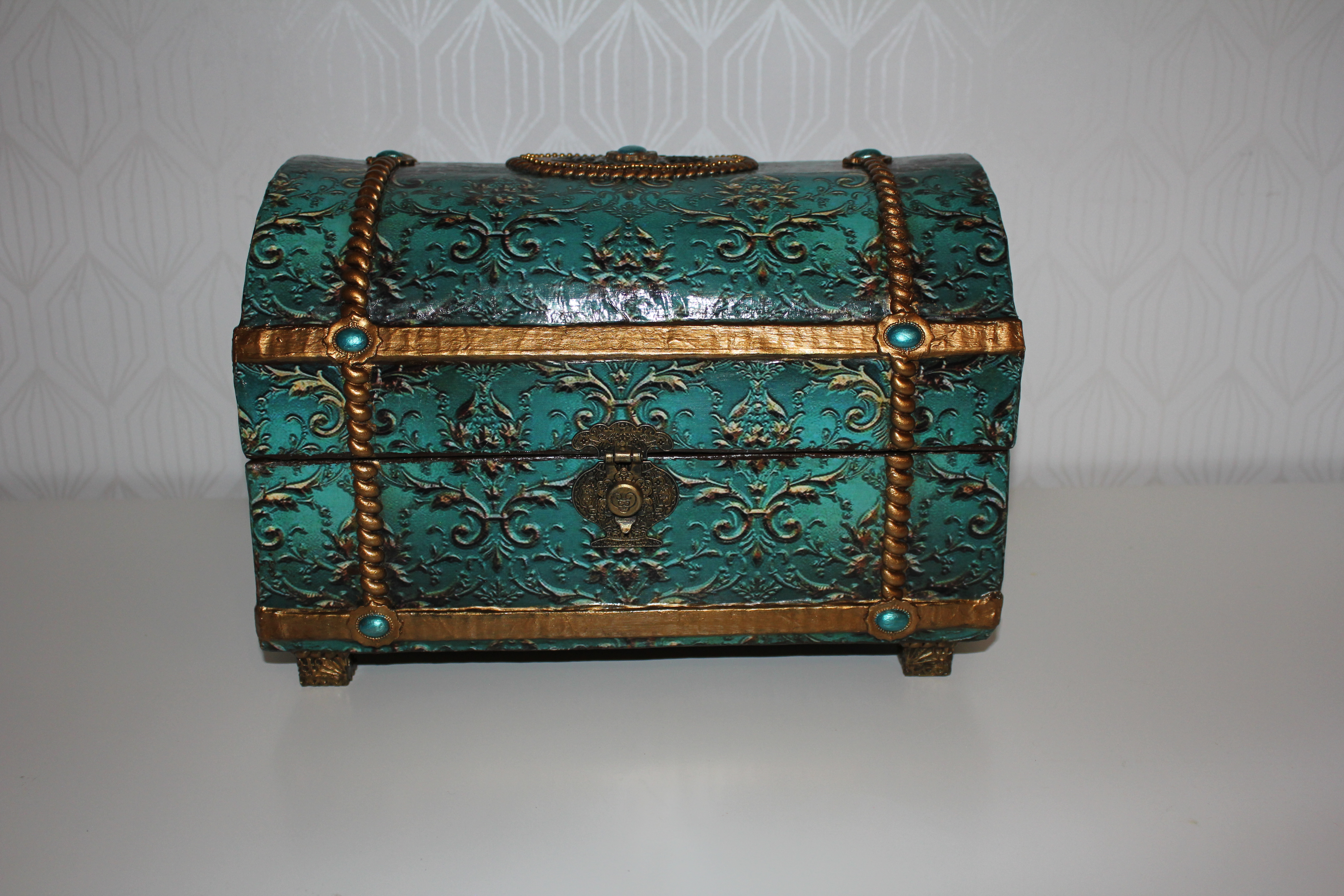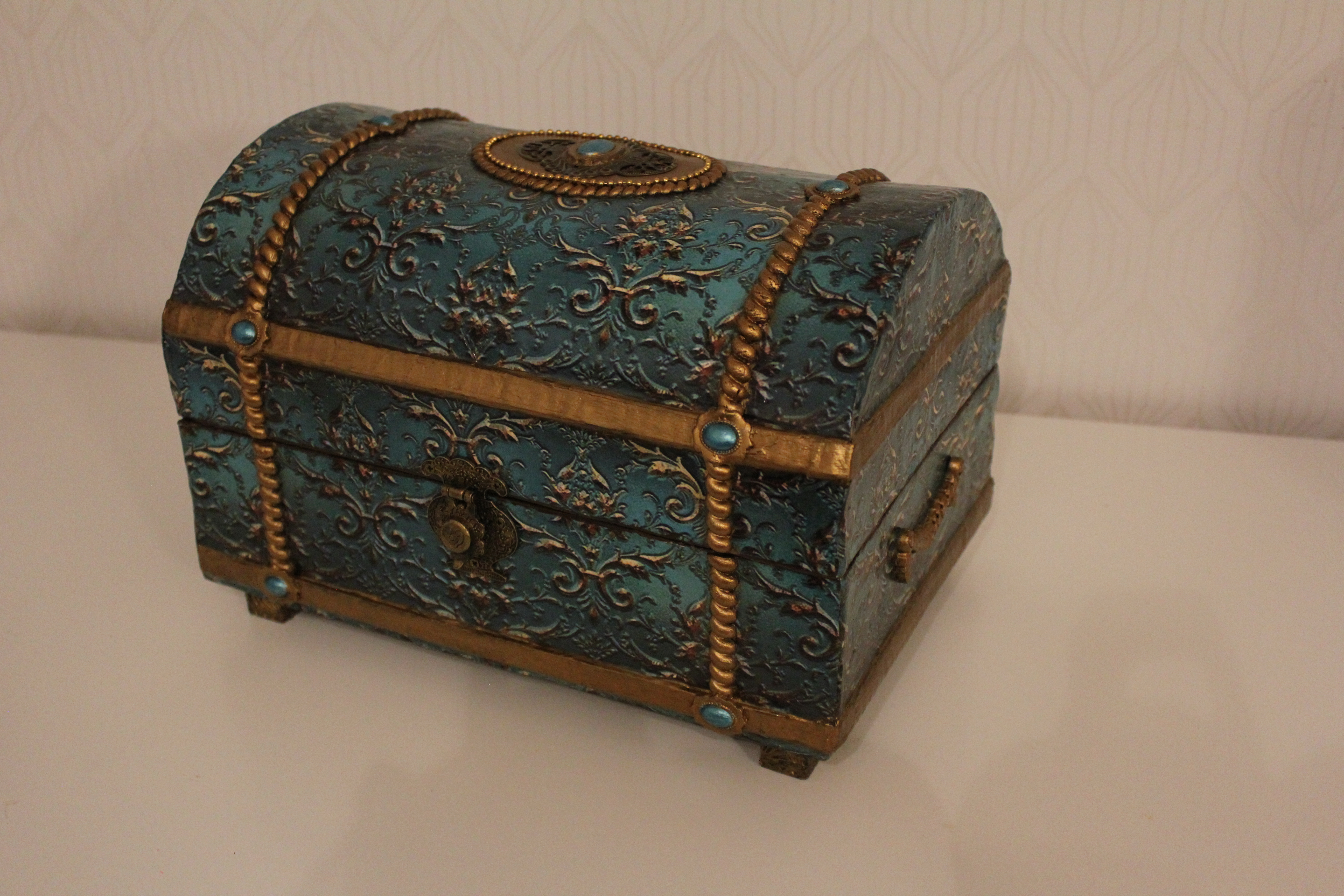 Просто очуметь, красота! Я сама начинала с фолиантов и сундуков из картона, причём делала сундуки огромными, чтобы сложить то, что не вмещается в шкафы, между делом занималась пэчворком и жаккардовым вязанием, потом перешла на бисер, а после бисера на куклы скульптурный текстиль. Но мне всё равно не хватает больших сундуков, а главное куда их ставить. Есть правда ещё одно место — под стол.