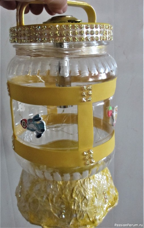 Этот сделала быстро, потому что без заморочек, а вот подставку сделаю, муж забракует: то маленькая, то большая. Алина, видя, что процесс затягивается, взяла у кукол вазочку, тихонько салфетками оклеила и… всё! Процесс поисков завершился!