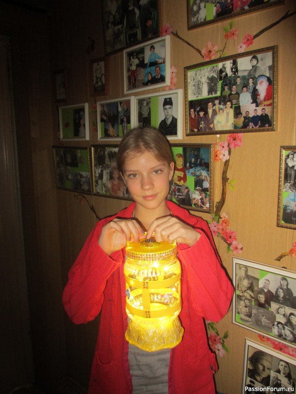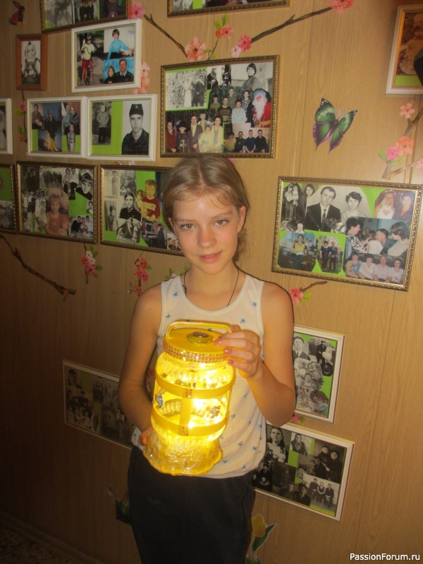 Какой фонарь нужный получился! Никаких свечек не надо! И светло, и красиво! Прекрасное решение проблемы нашла Алиночка! И бабушка — супер-мастер! Пусть всегда у вас все будет светло!