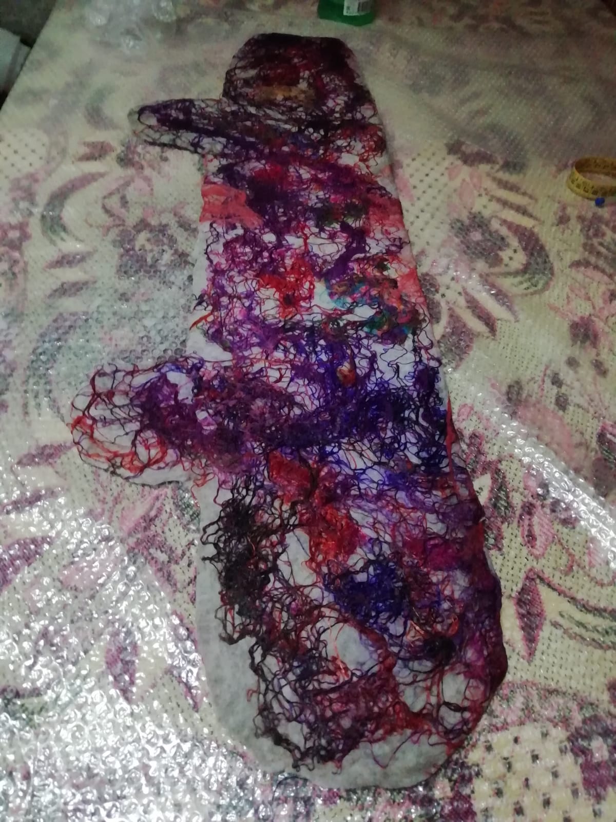 Сказали мне.что варежки из 50 гр шерсти не греют...но решила проверить. взяла 50гр сливера серого. невзрачного ,обвела свою руку. увеличила все размеры на 2. и разложила шерсть. крестиком в 1 слой. сверху накидала каких то спутанных ниток. валялись давно,не знала куда деть. сваляла... страшненькие конечно. но для эксперимента пойдёт... надела варежки и пошла на улицу. там минус 15 и сильный ветер. шапки вязаные продувает. все одевают капюшоны. на улице была час. придя домой руки остались теплыми. варежки не продувались совсем. Но! ощущения на руках не очень приятные. плотно свалянные. они получились жестковатыми.. поэтому,думаю имеет смысл комбинировать войлок с вязанием..эксперимент продолжать буду . по мере изменения температуры на улице.