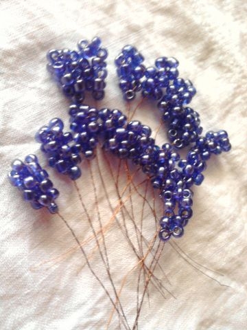 Концы проволочки скрутим.1-на ягода винограда из бисера у нас есть. Сделаем еще четырнадцать таких ягод, для того чтобы получить гроздь винограда из бисера.