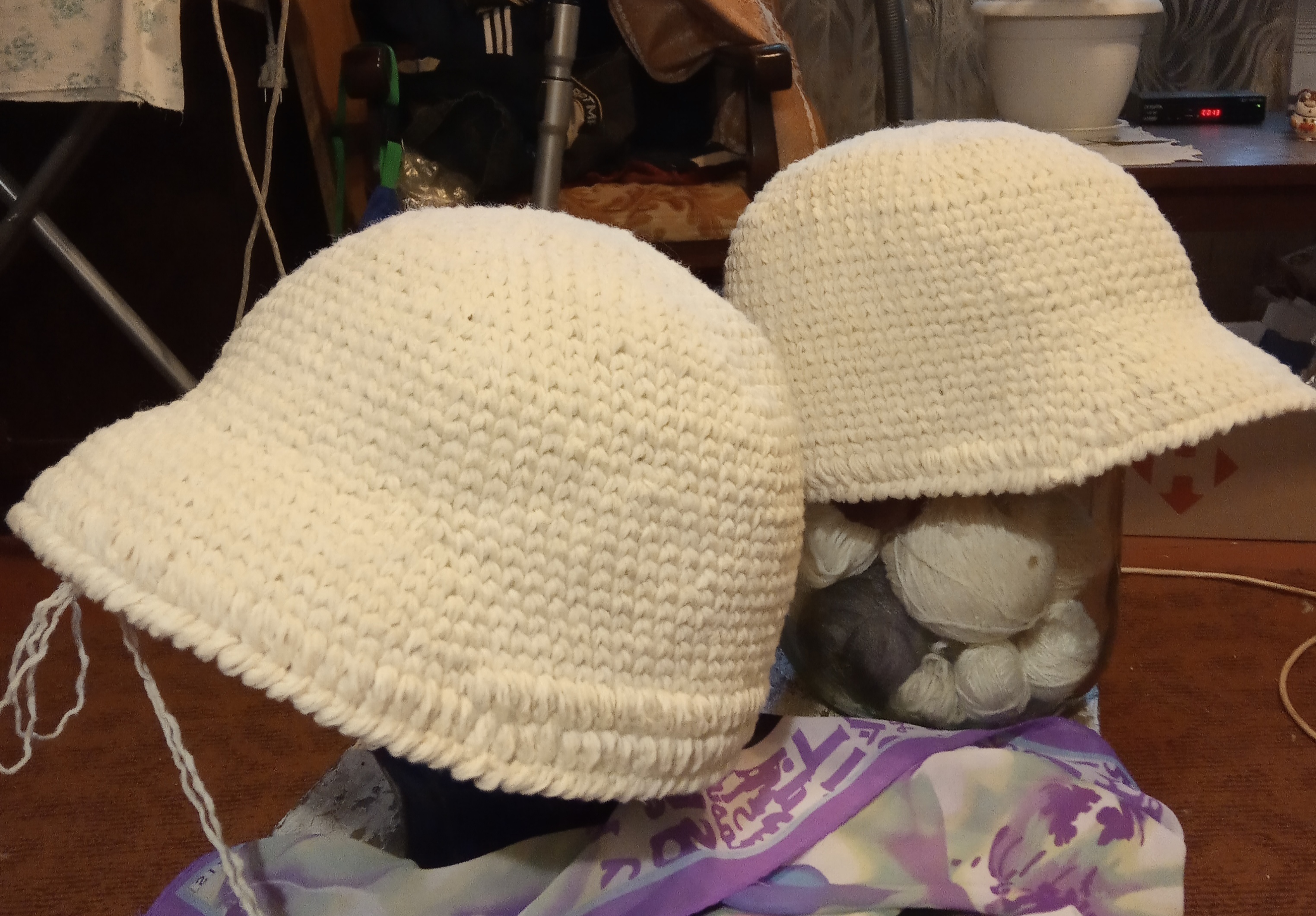 Ну, наконец-то!!! Закрываешь годовой отчет шляпкой! Умница-рукодельница! Получились милые шапочки, но с меньшим козырьком мне форма нравиться больше, а тебе виднее, что лучше носить. Кливия шикарная, я белую вижу первый раз.