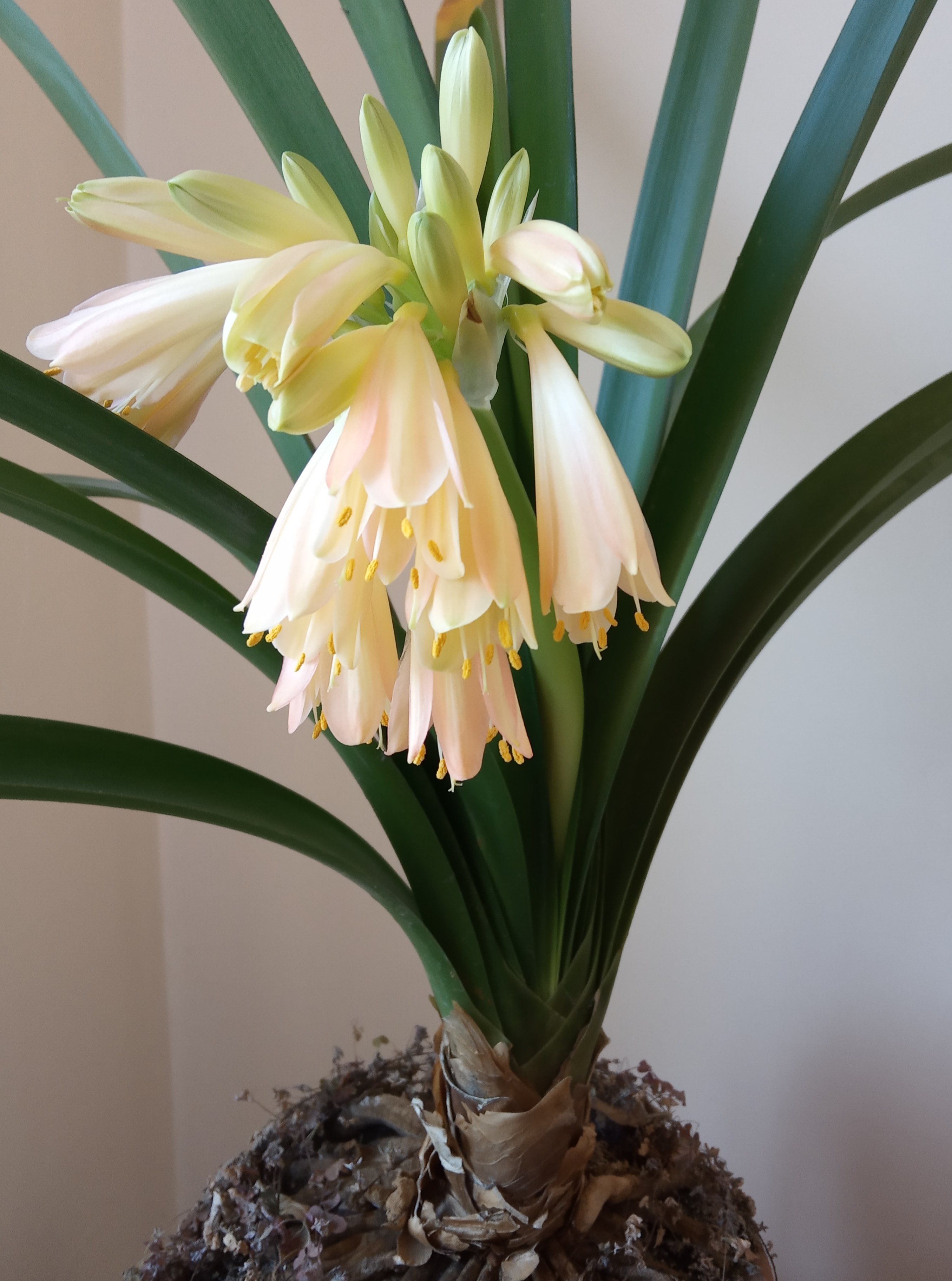 Спасибо, Натуся. Буся всех и все динамит, дрыхнет на спинке кресла у меня за спиной. Я не хмурая, я подслеповатая. Без очков ловлю фокус. Мне кажется, что в прошлом году кливия была оранжевой, может освещения не хватает. Она у соседей в кабинете стоит, а в прошлом году стояла на окне в коридоре.