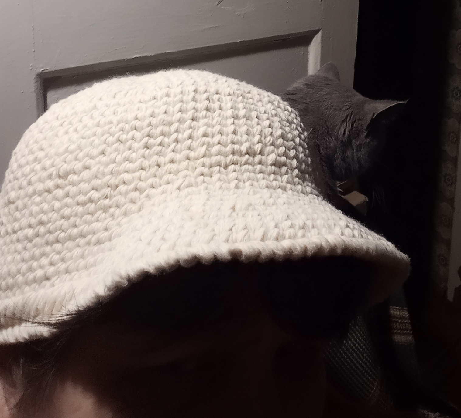 Начну с Буси, еле нашла ее, так замаскировалась)))) Теперь про кливию - первый раз вижу белую да ещё такую роскошную! До кепочек очередь дошла. Мне понравился фасон, нечто среднее между кепкой и шляпкой, интересное решение. И последнее: а что ты така хмурая, ведь красоту нам показываешь))))