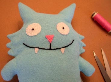 9. пришиваем детали неконтрастной ниткой и с помощью мулине вышиваем глазки..
