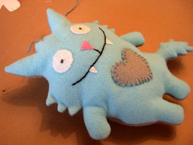 11. пришиваем к пузу сердечко и потайным швом зашиваем дыру между ушами. Готово! :)