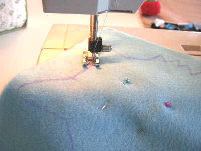 2. скалываем булавками 2 куска ферта и сшиваем по контуру (за исключением промежутка между ушами)