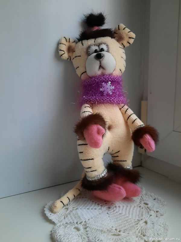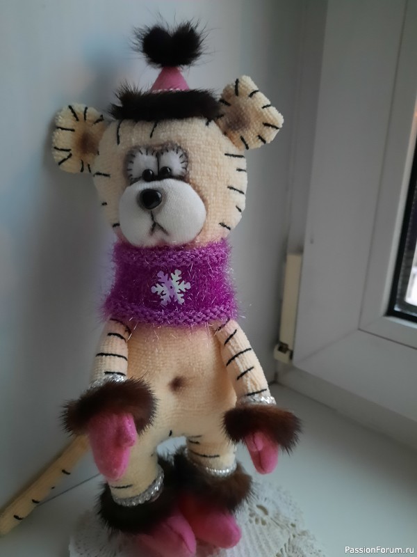 Впервые работала с клеевым пистолетом и натуральным мехом,огрехов много,но я довольна приобретенным опытом. В своего тигрика я просто влюбилась,несмотря на огрехи в сборке.Но навыки приходят с опытом,буду учиться и дальше