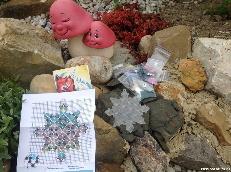 У меня небольшая работа от "Волшебной страны". Снежинка. Основа - перфорированный пластик, очень красивый бисер, впрочем, я уже рассказывала о звёздочке https://www.passionforum.ru/posts/140393-zvyozdochka-na-yolku.html Эта снежинка - дополнение к ней.
