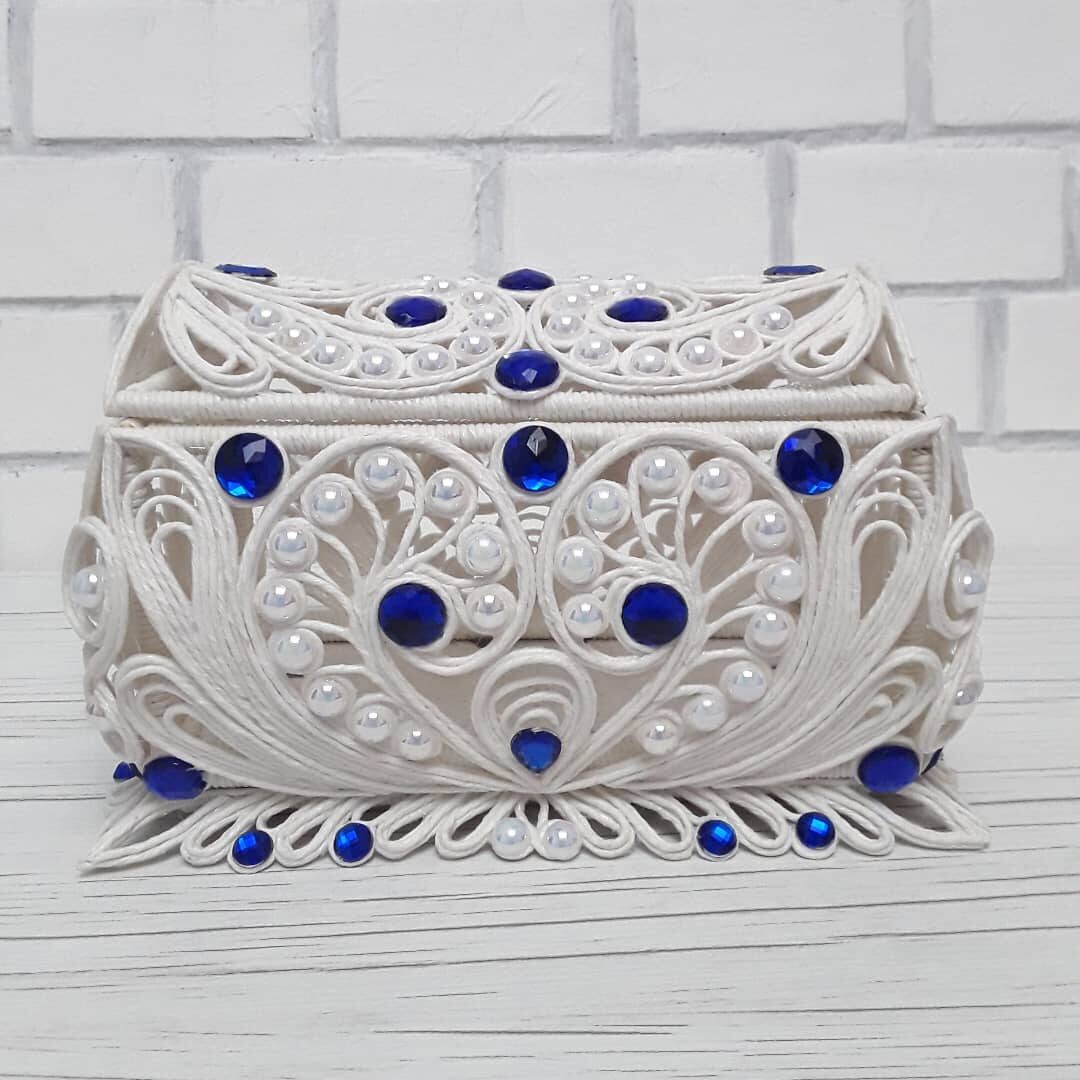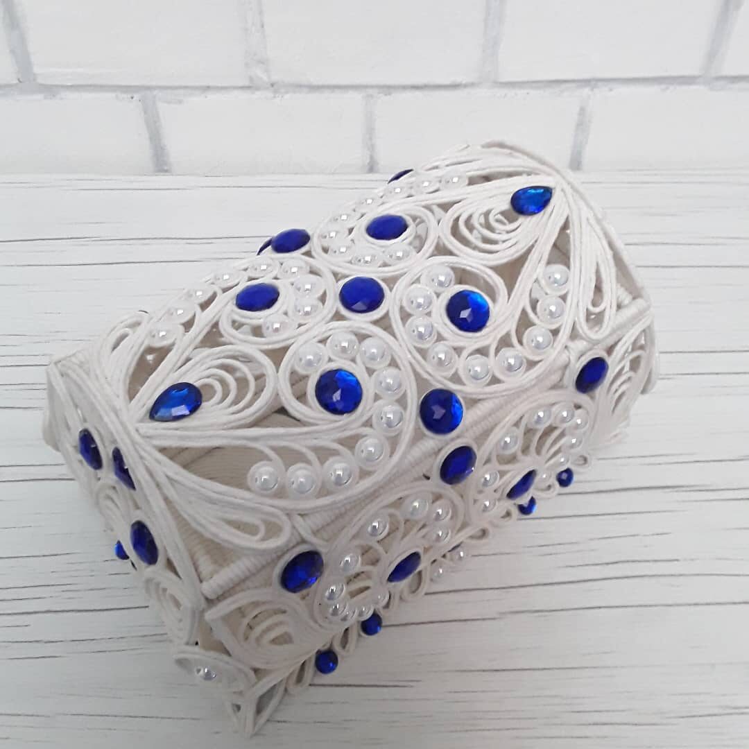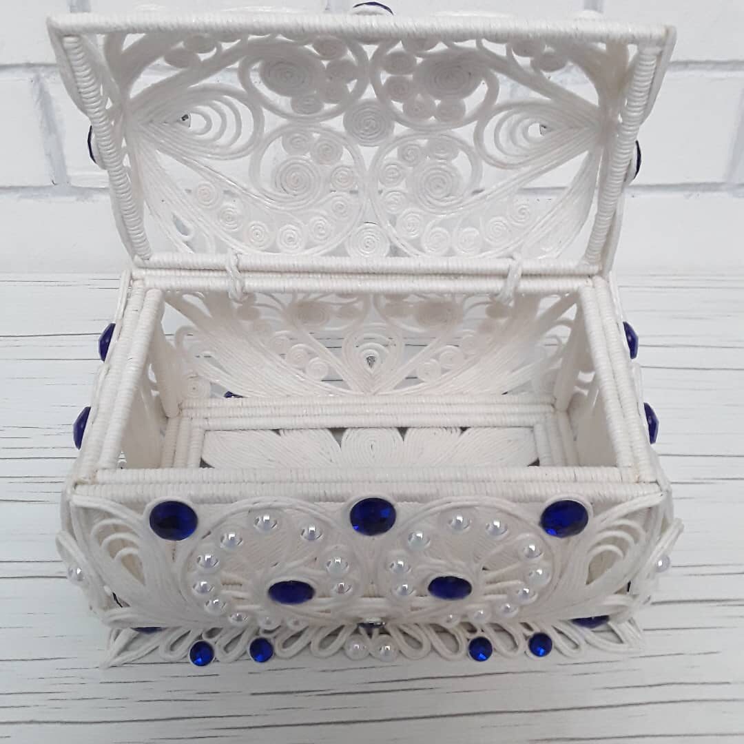 Моя шкатулка в технике джутовая филигрань. Работа, конечно, не быстрая. Но оно того стоит.