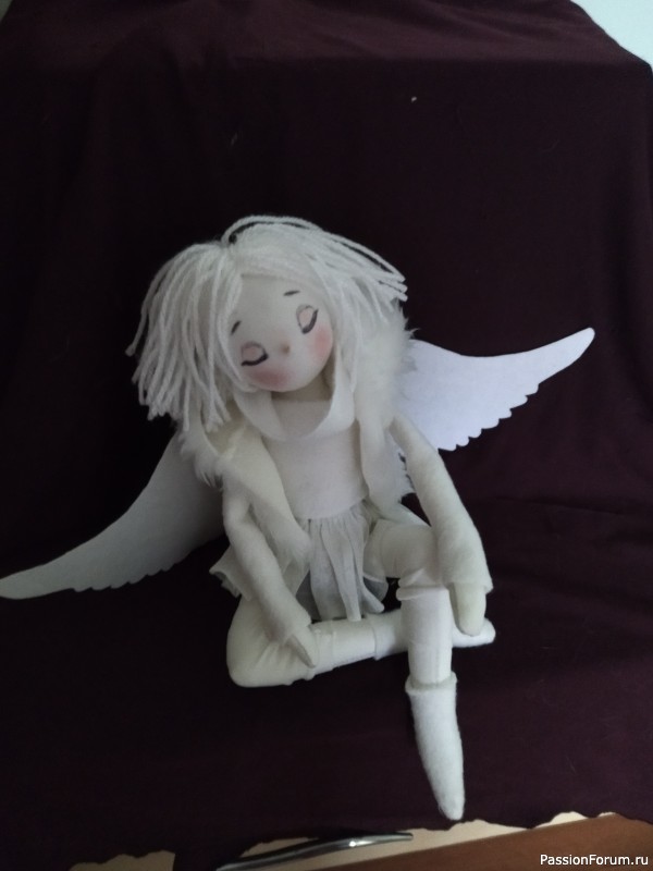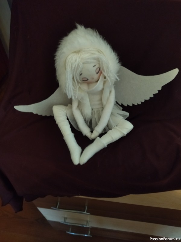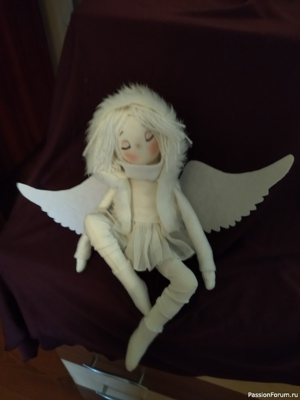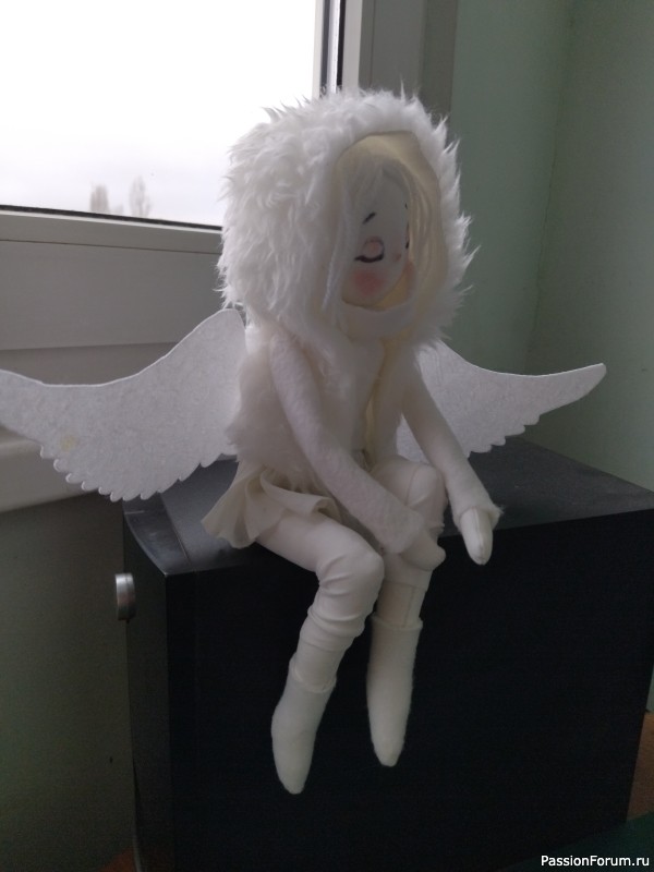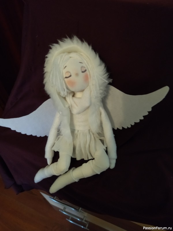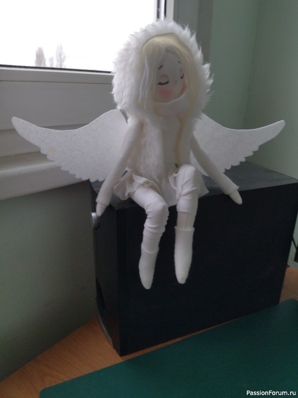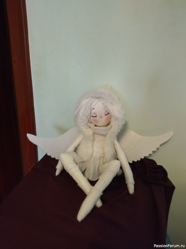 Знакомьтесь. Она высокая 40 см, внутри проволочный каркас, хорошо стоит и красиво сидит. Выкройка взята у Войнатовской Елены.Шила уже не одну куколку по этой выкройке и очень нравиться.