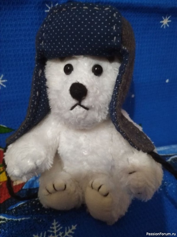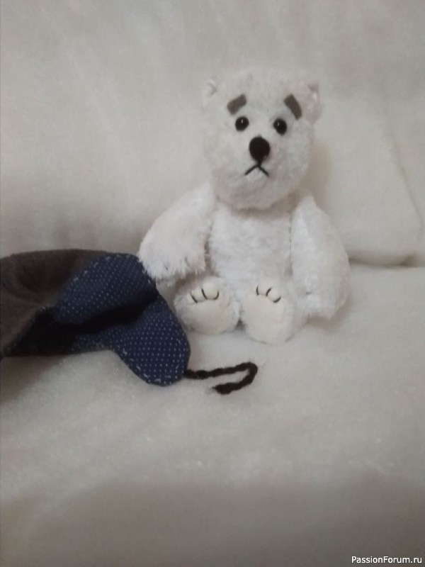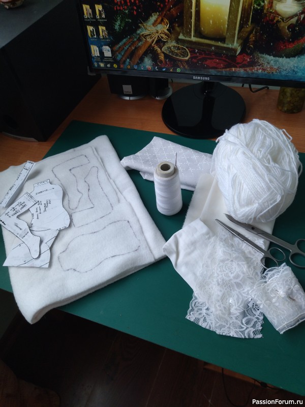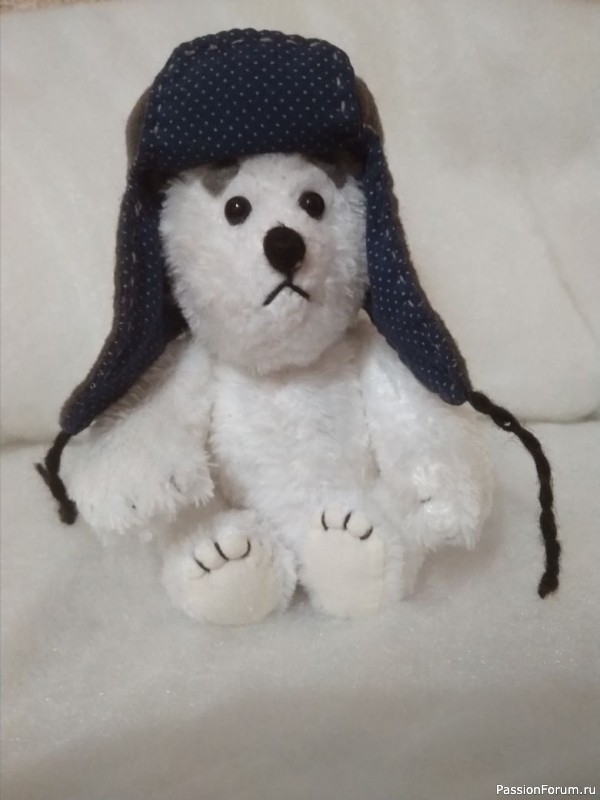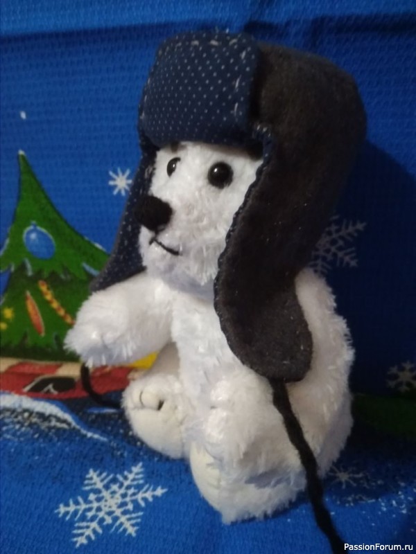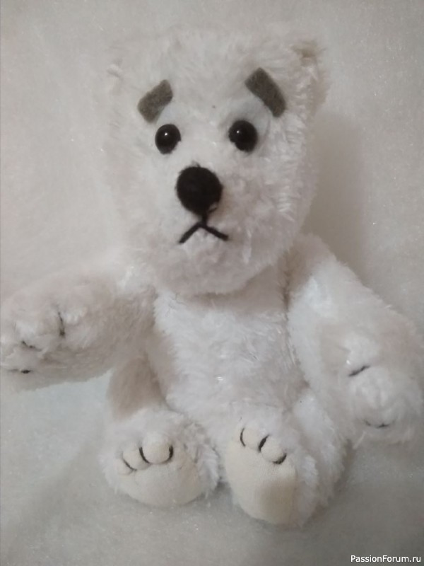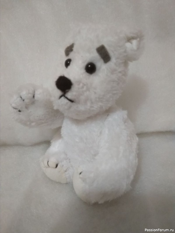 Материалы: бязь, флис, искусственный мех, белый трикотаж, флизелин, кусочек рюша на занавески, акриловая пряжа, набивка — синтепух.
