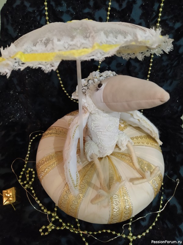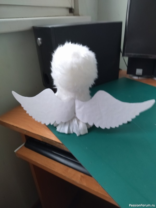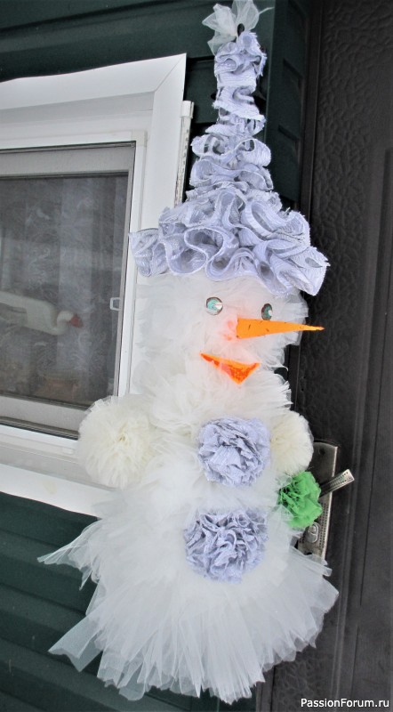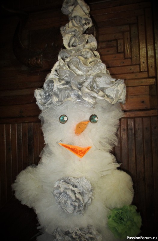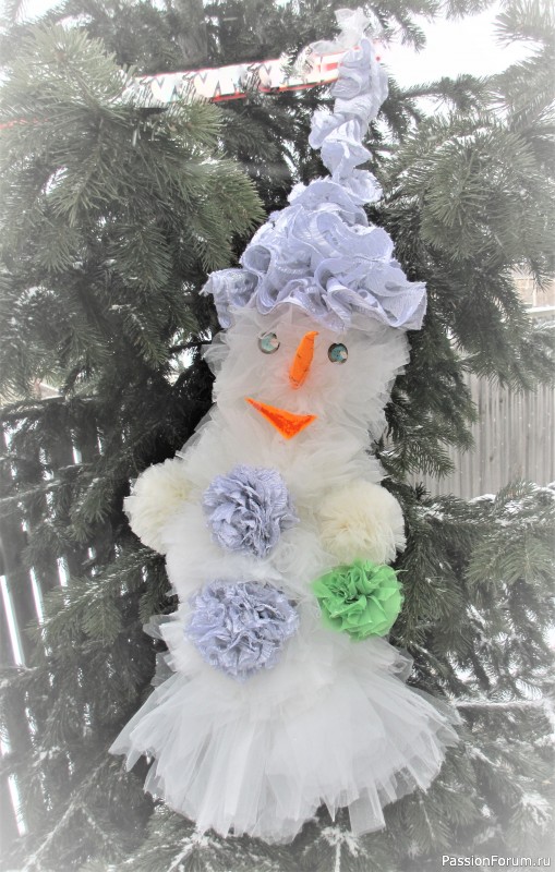 Из белых шаров создана Снеговушка, а о материале — шепну вам на ушко!