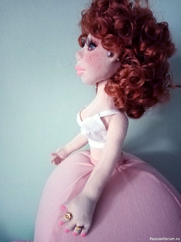 Кукла классная)))так на мою сестру похожа, особенно взгляд...))) очень фигуристая, а лифон прям убил))) советик: за качественным ситчиком и кружавчиками надо в секондхенд шастать- я там своим куклам покупаю по дешевке взрослую одежду и распарываю для нужных лоскутов, часто шторки из ситца плотного беру, скатерти с кружевами.