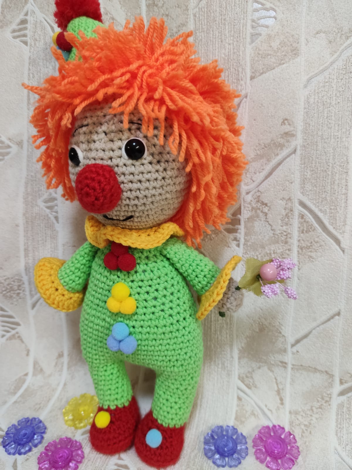Захотелось связать клоуна, но многие мастер классы не подходили мне, пришлось с другой игрушки копировать.