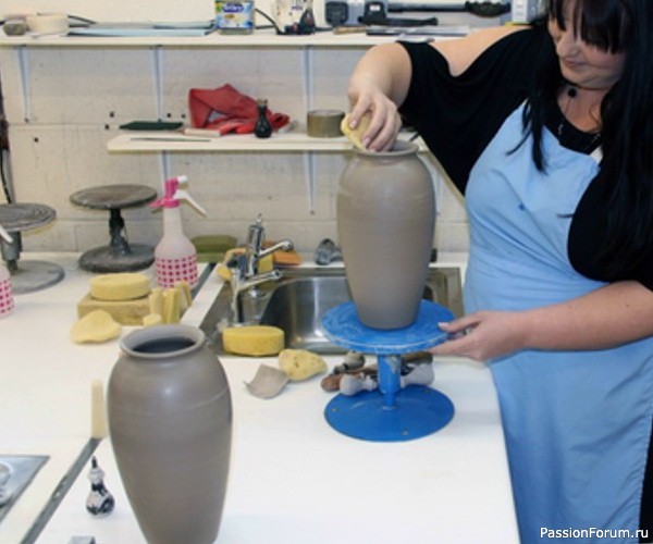 Затем глиняная заготовка шлифуется, чтобы удалить любые следы инструмента и придать гладкость поверхности изделия.