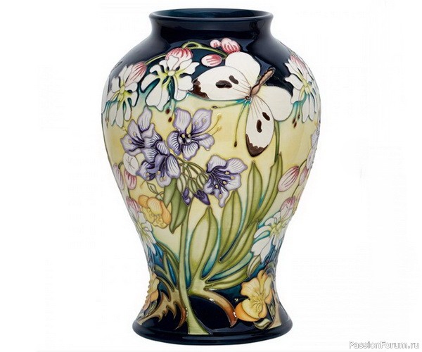 Ваза «Луговое попурри», высота 22,5 см, Moorcroft, дизайн Кэрри Гудвин. Детали лепестков и крылья бабочек проработаны вручную в технике сграффито.