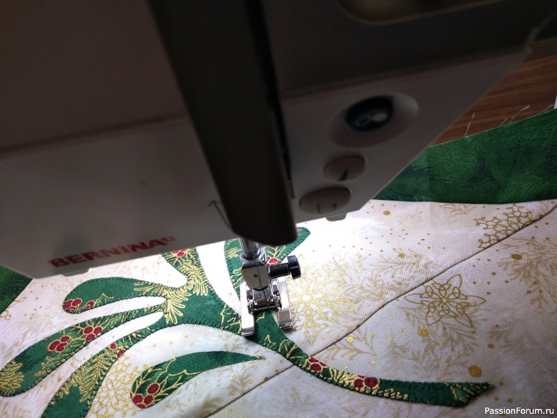 Лоскутное шитье и любимая мной аппликация хорошо дополняют друг друга. Ткани американские – новогодняя коллекция от RobertKaufman. Внутри слимтекс. Стежка выполнена аппликационной строчкой металлизированными нитками и свободно-ходовой.