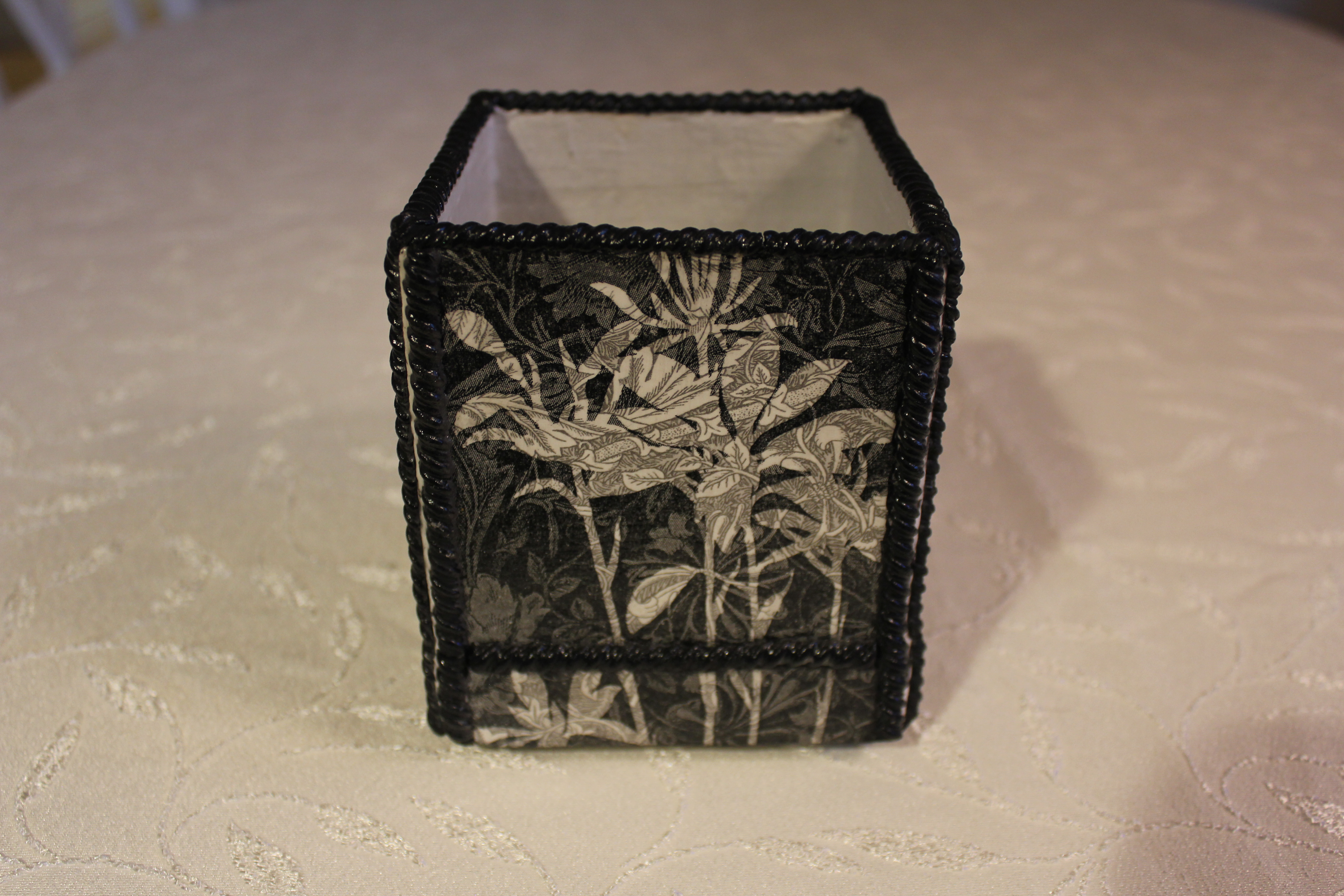 Спасибо большое Валентина! Я люблю сам процес работы и не тороплюсь быстрее его закончить. Фишка в том, что мне хочется использовать все то, что у меня скопилось и ничего не покупать, пока мои запасы не иссякнут. Конечно кое- что покупать приходится- клей и лак. Салфеток у меня много и среди них нашла эту цветочную салфетку с черным и серым фоном.