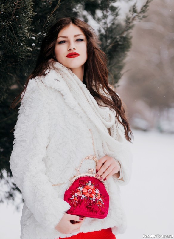 Элегантная красная сумочка вышитая лентами и бисером