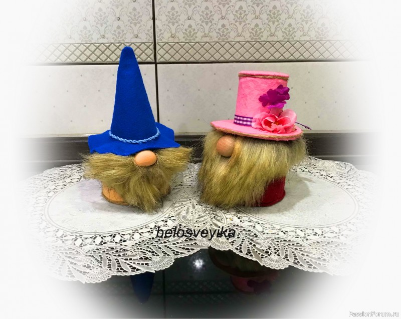 2) Для 2-го гнома(в синей шапке) я взяла на шапку мягкий фетр,1мм.И шапка получилась лучше.