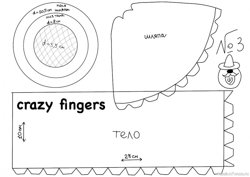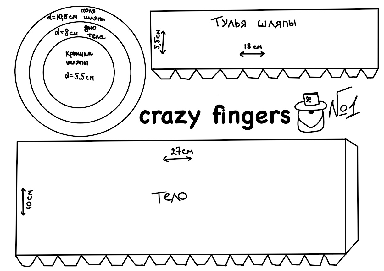 3) Мне кажется, что дно у автора 8 см в диаметре , большое Вполне можно уменьшить на 1,5/2см.Тело получается толстое. но короткое.Высота у автора 10см тела. Но так как фетр на верху закладывается складками, то несколько сантиметров уходит на это и туловище укорачивается .Либо надо к выкройке добивить пару см по высоте.