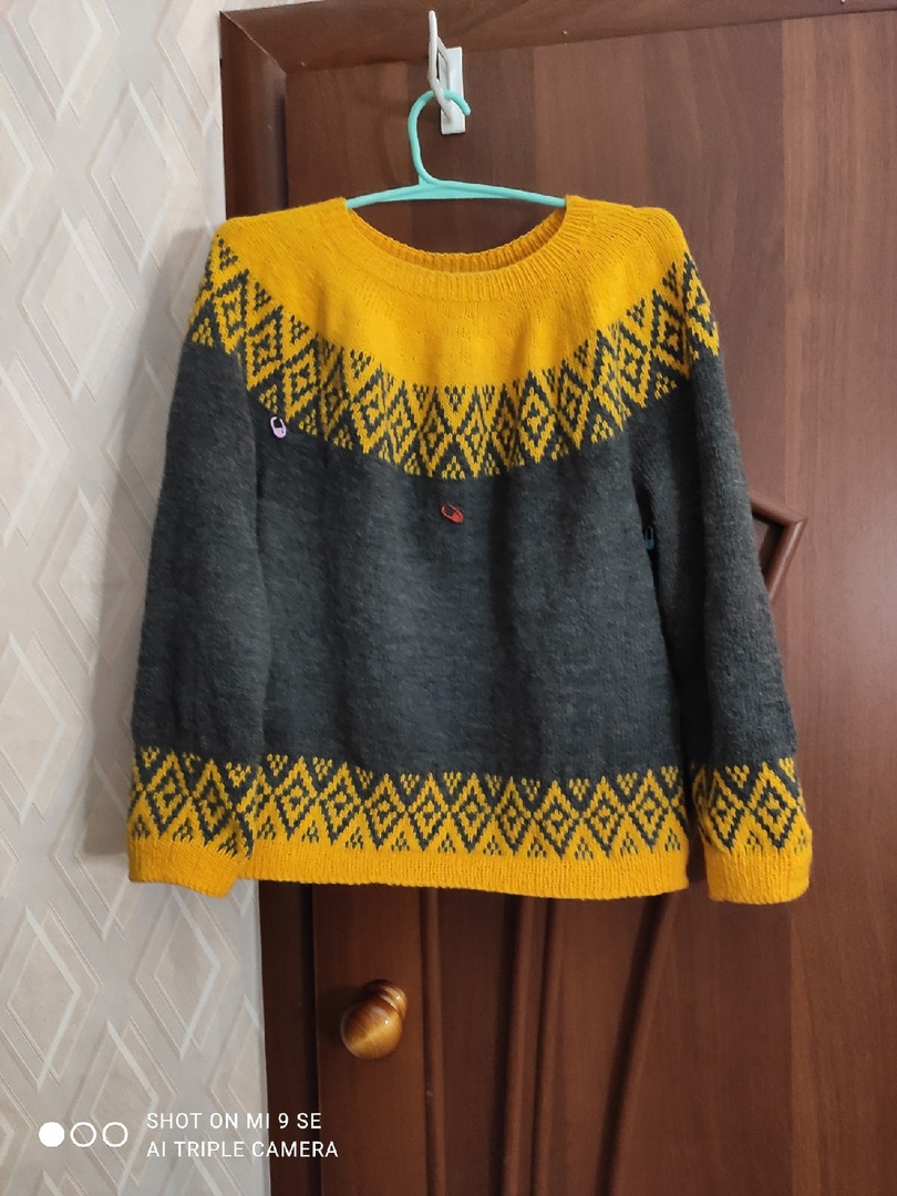 Как здорово сочлись цвета!!! Отличный свитер, хорошо, что низ связали с орнаментом. Так интересней.