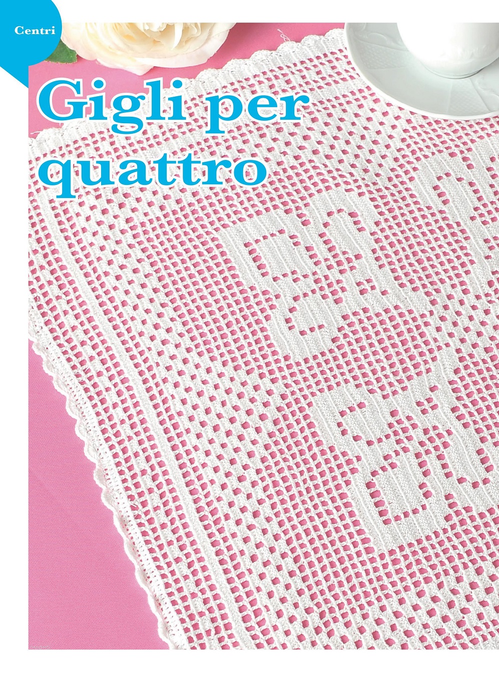 Итальянский журнал по вязанию крючком и вышивке крестиком. В каждом номере проекты и идеи для создания уюта в вашем доме: занавески, бордюры, салфетки, кайма, связанные крючком в филейной технике. А также сумки, пледы, подушки, коврики, прихватки и многое другое.