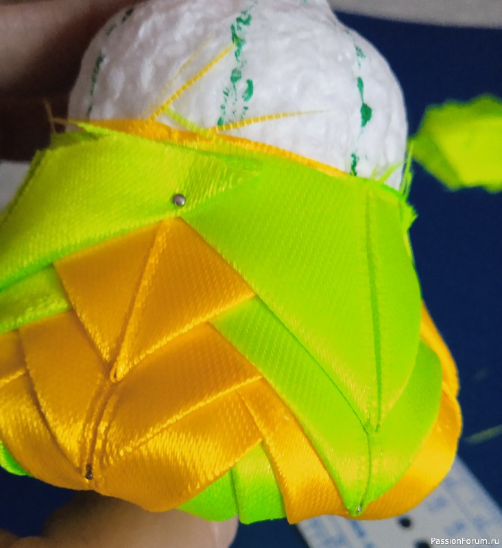 Затем четырьмя отрезками из широкой ленты закрываем основание: