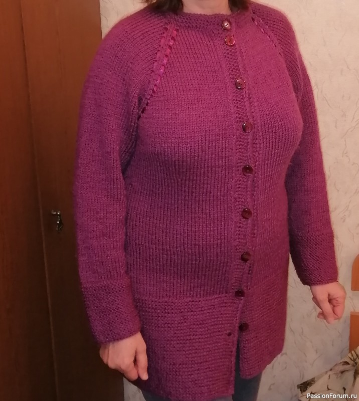 Добрый день, Татьяна! С большим интересом и удовольствием прочитала ваше повествование! Очень люблю вторую жизнь вещей! Мне понравился состав пряжи и работа аккуратная! Вертикальные вытачки заслуживают отдельного бонуса! Не делала бы прибавки вдоль РЛ с помощью накидов, но в этом вы и сами уже убедились, хотя получилось симпатично с ленточкой. Жакет добротный, теплый, носите с удовольствием !