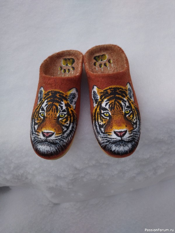 Людочка, эти тапочки, просто бесподобны!!! Лисица хороша, но тигр покорил!!! Но чему восхищаюсь, так это самими тапочками, как выполнены сказка!!!!
