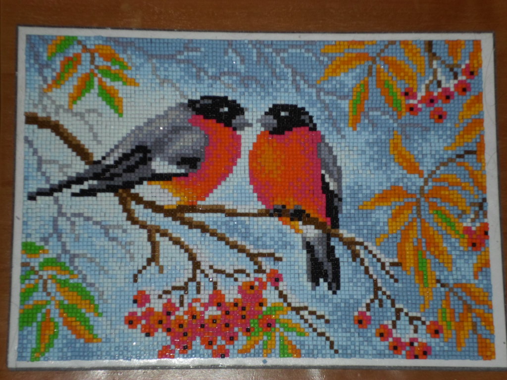 Сделала первую картину в технике алмазной мозаики. Набор фирмы Вышиваем бисером заказывала в интернет магазине 7 петель. Эта мозаика на магнитной основе, так что готовую работу можно повесить на любую металлическую поверхность, например холодильник или оформить в рамку. Сделала за 15 дней.