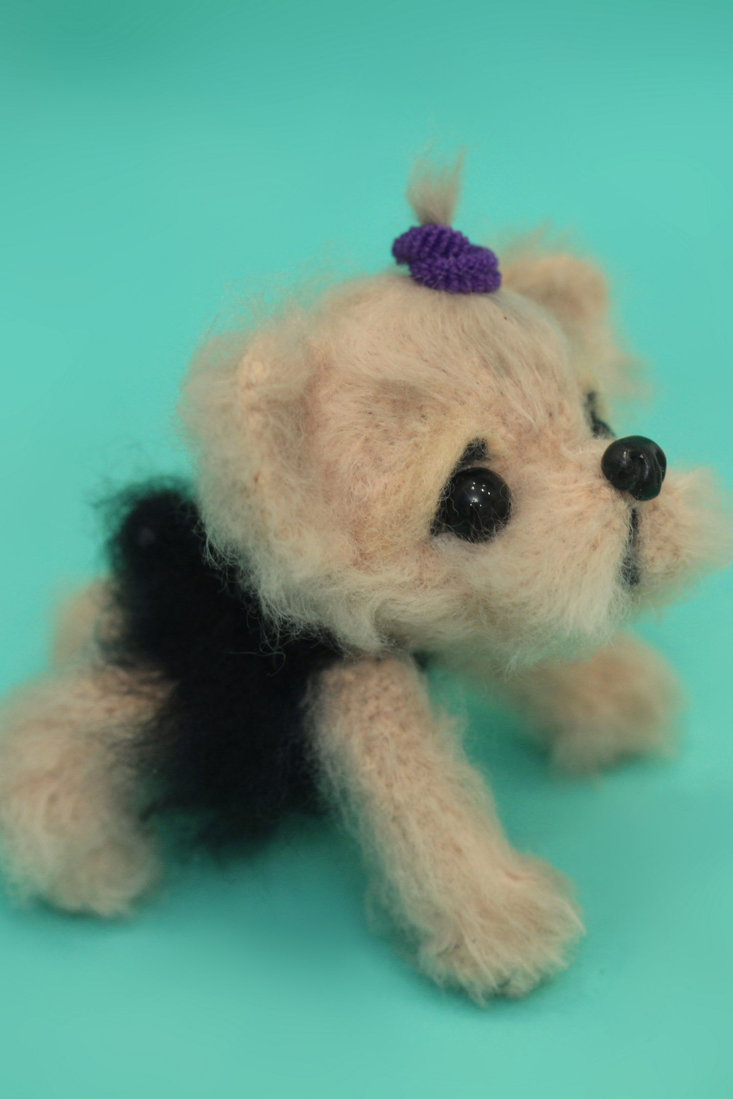 Пушистый щеночек. Размер - 13 см. На каркасе из медной проволоки.