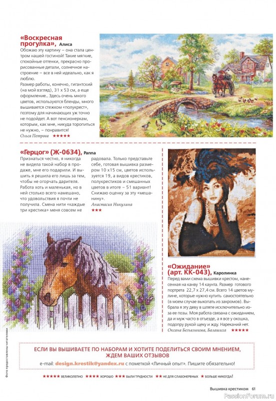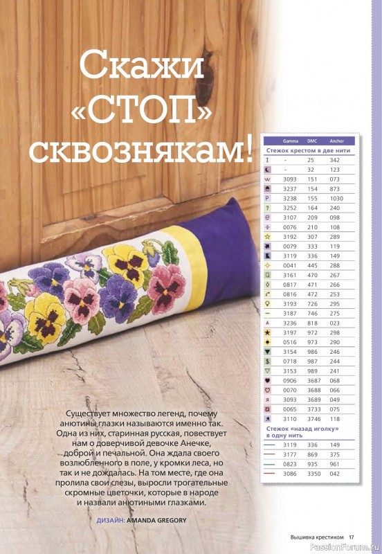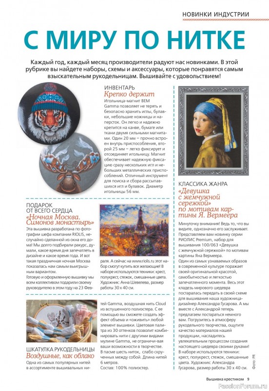 «Вышивка крестиком» - журнал для тех, кто увлекается вышиванием и рукоделием. В каждом номере вы найдёте схемы и лучшие идеи для вышивания от дизайнеров всего мира, советы экспертов, обзор рынка аксессуаров, статьи о рукоделии. Если вы хотите внести новые краски в картину своей жизни, ищете душевного покоя и мечтаете о творчестве – то журнал «Вышивка крестиком» - правильный выбор!