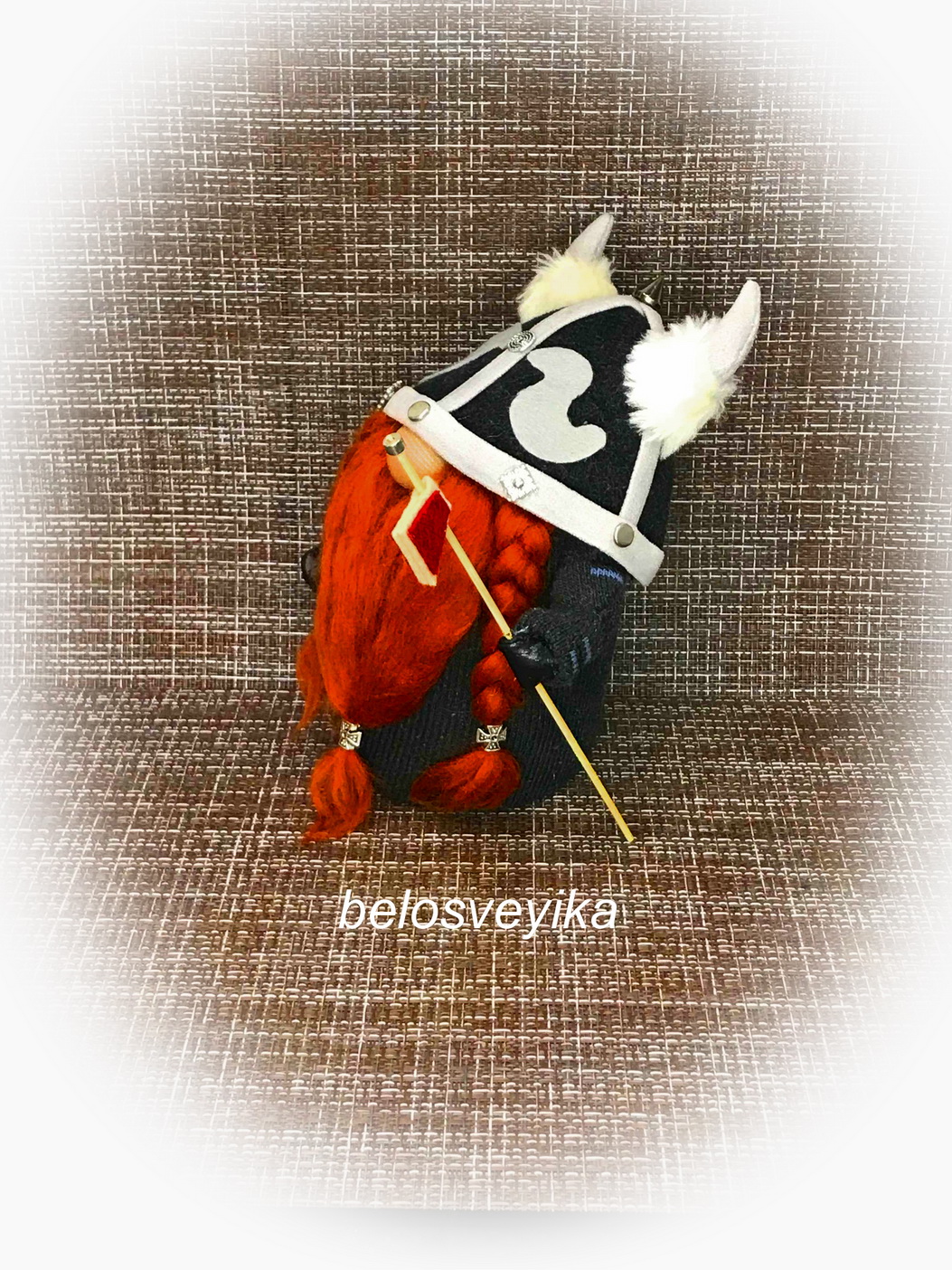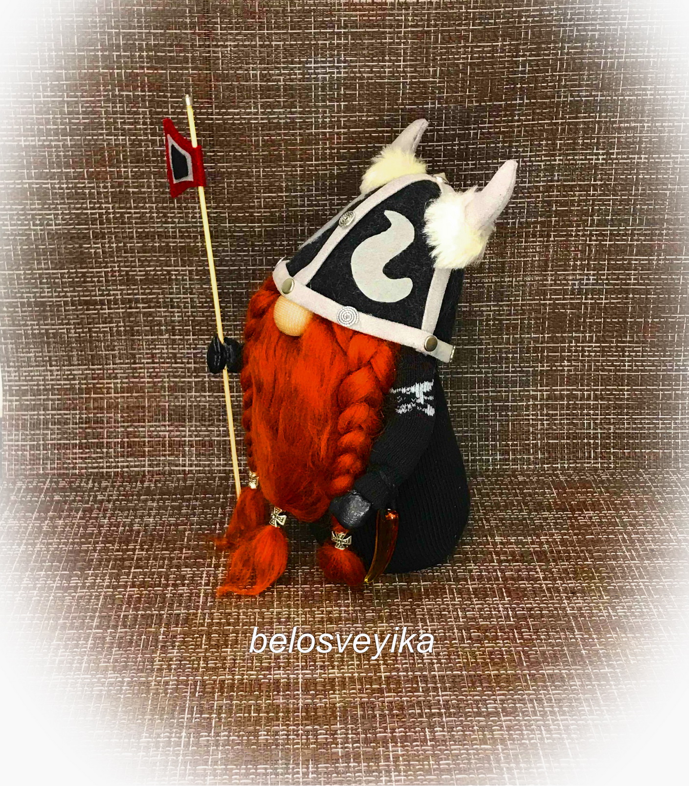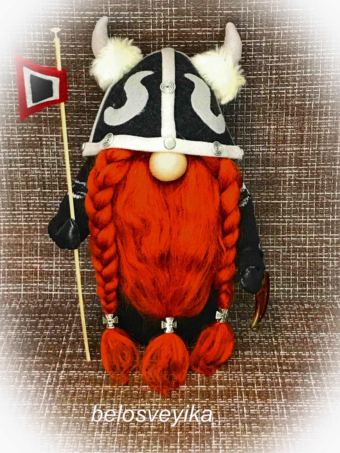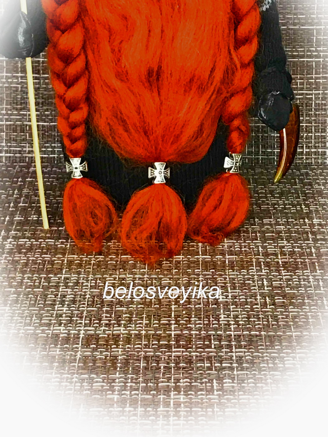 специально заказала такие украшения на бороды. В руках у них янтарные клыки неведомого зверя, то же заказывала для Викингов. Как говорит моя мама, я заказываю куклам украшений больше, чем себе.