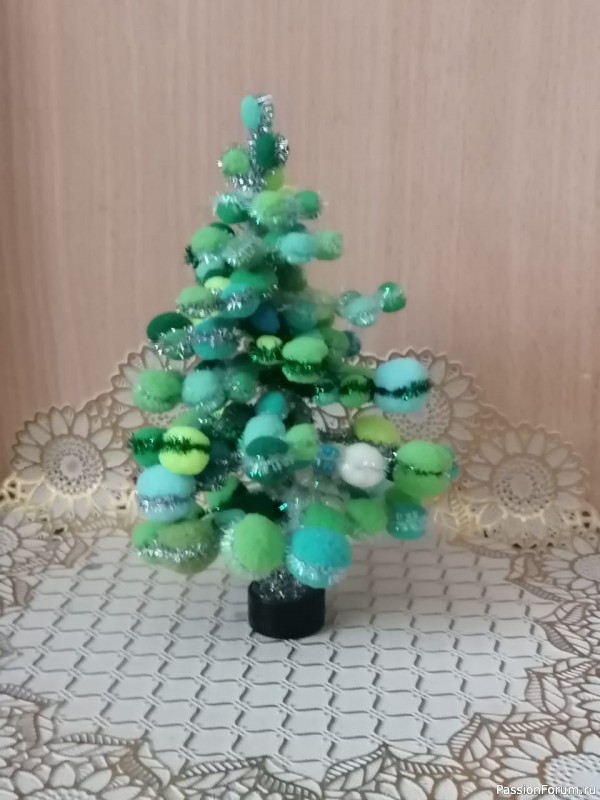 Очень люблю делать что-то из помпонов. Вот и придумала эту ёлочку!!!